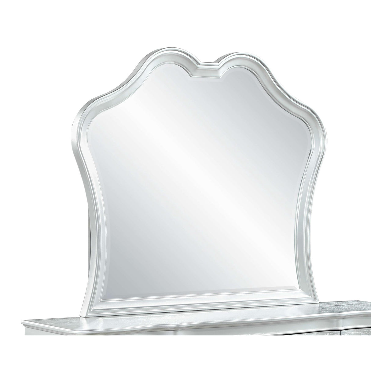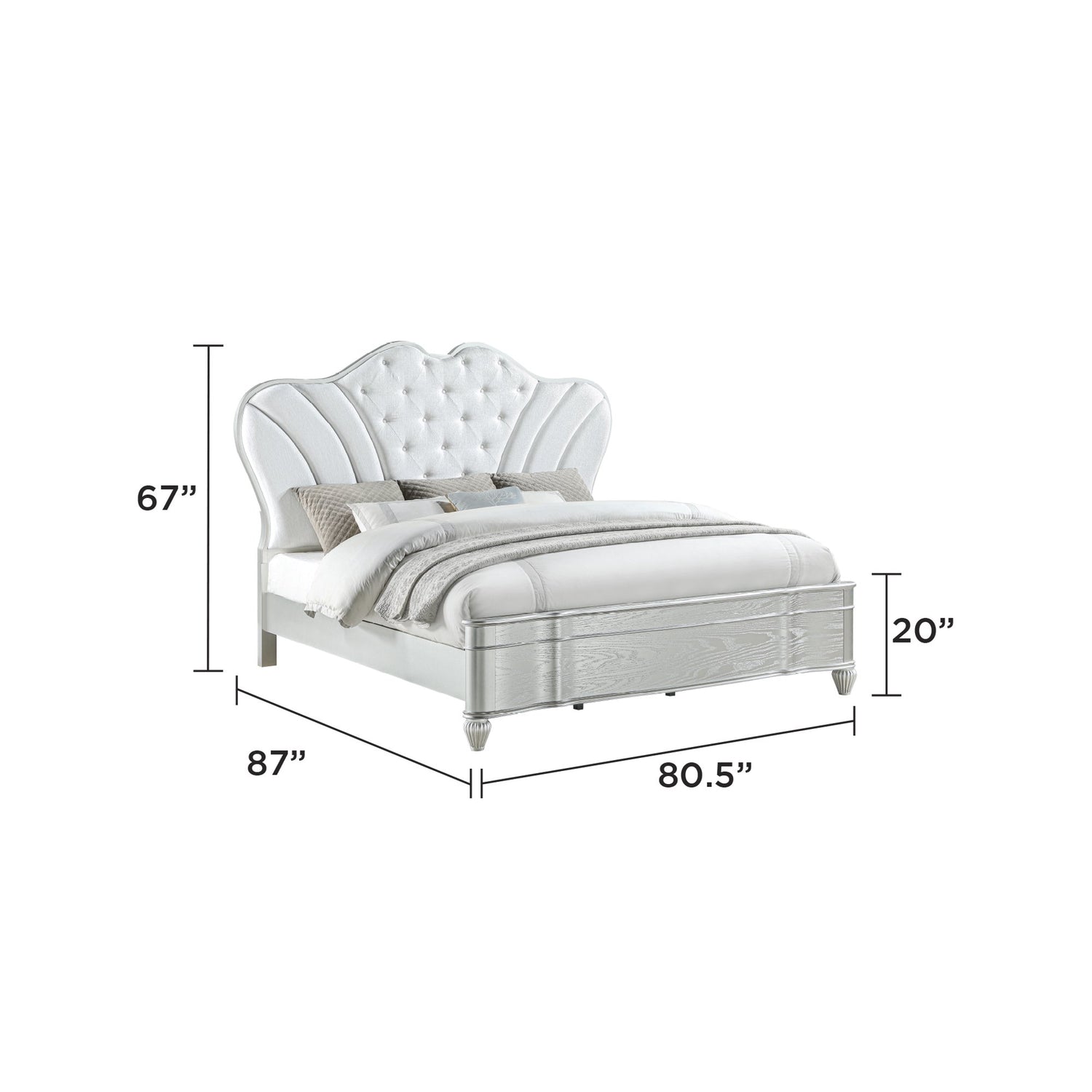 Conjunto de dormitorio Landmark Panel Plateado | Galaxy - Tamaño Queen / Juego de 4 piezas: cama, cómoda, espejo y mesita de noche está agotado y se enviará tan pronto como vuelva a estar disponible.