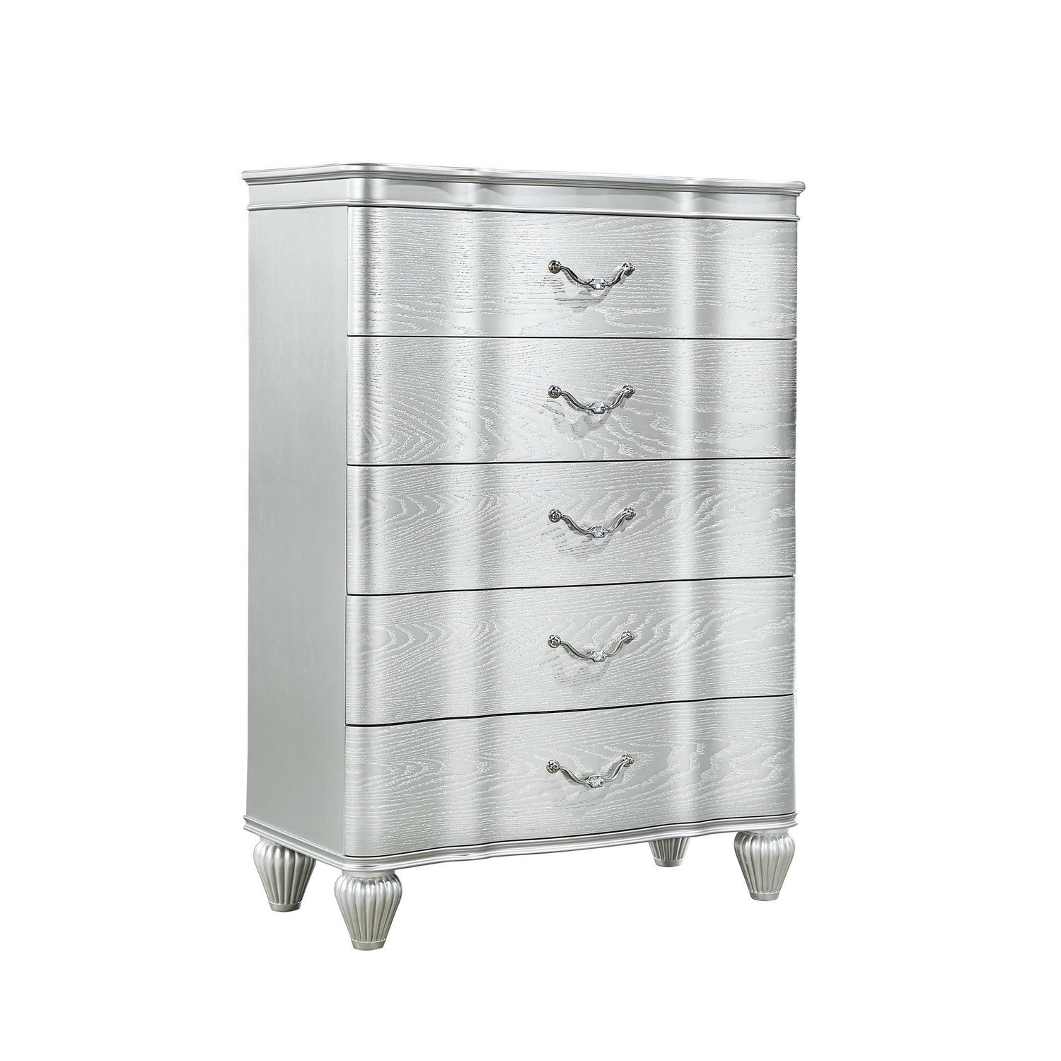 El juego de dormitorio tradicional Landmark aporta elegancia atemporal y prácticas soluciones de almacenamiento a su hogar. Fabricado con una resistente estructura de madera maciza, este juego luce un elegante acabado plateado que añade sofisticación a cualquier dormitorio.