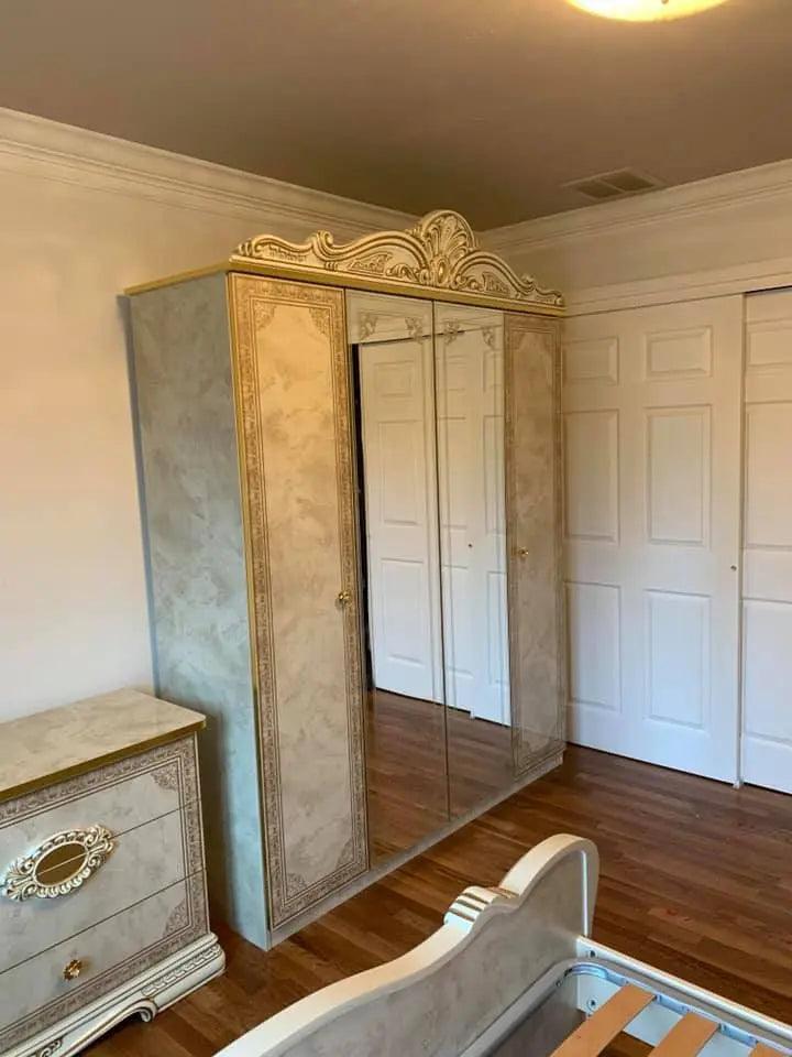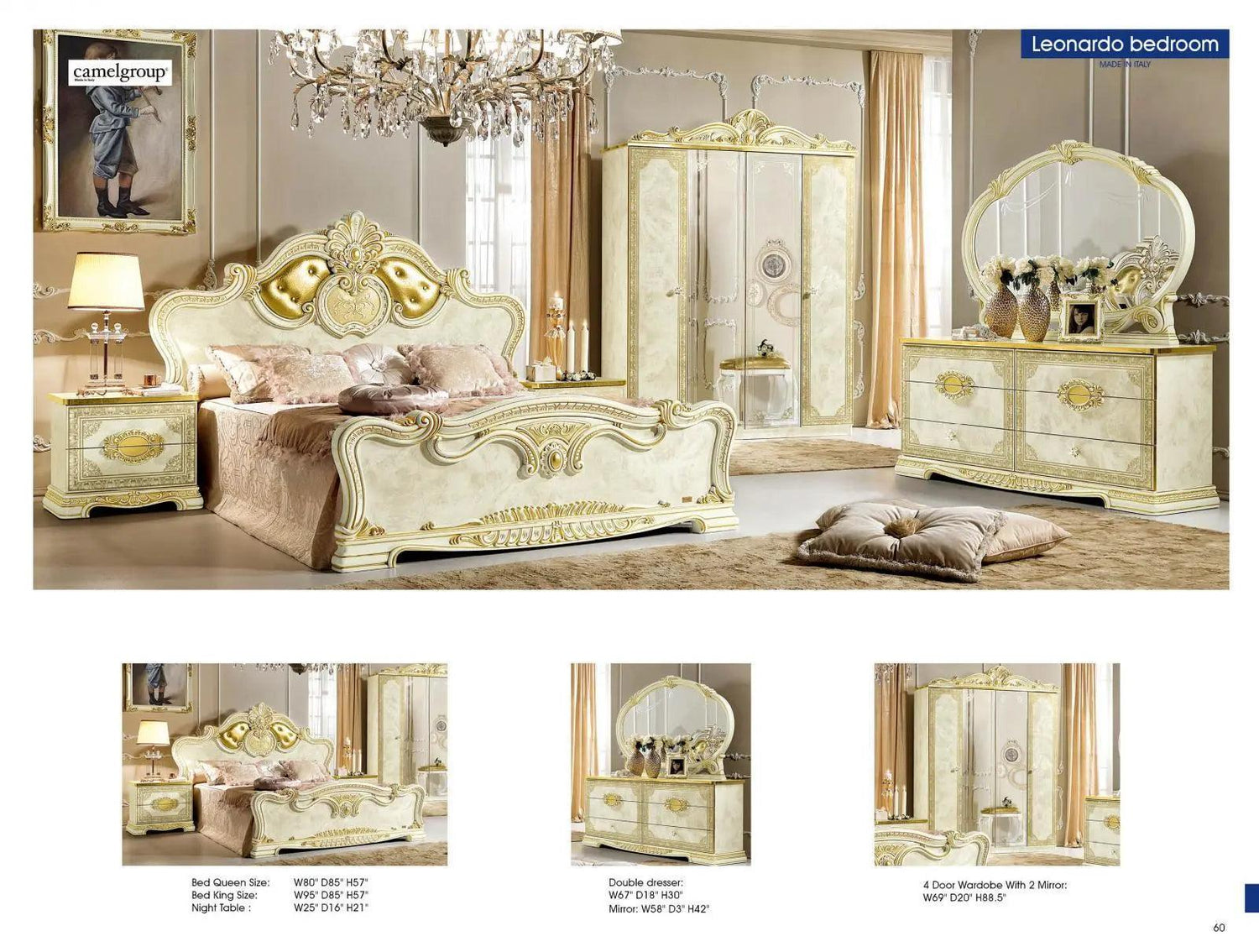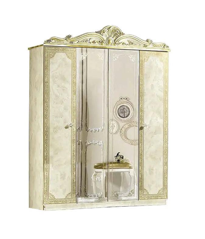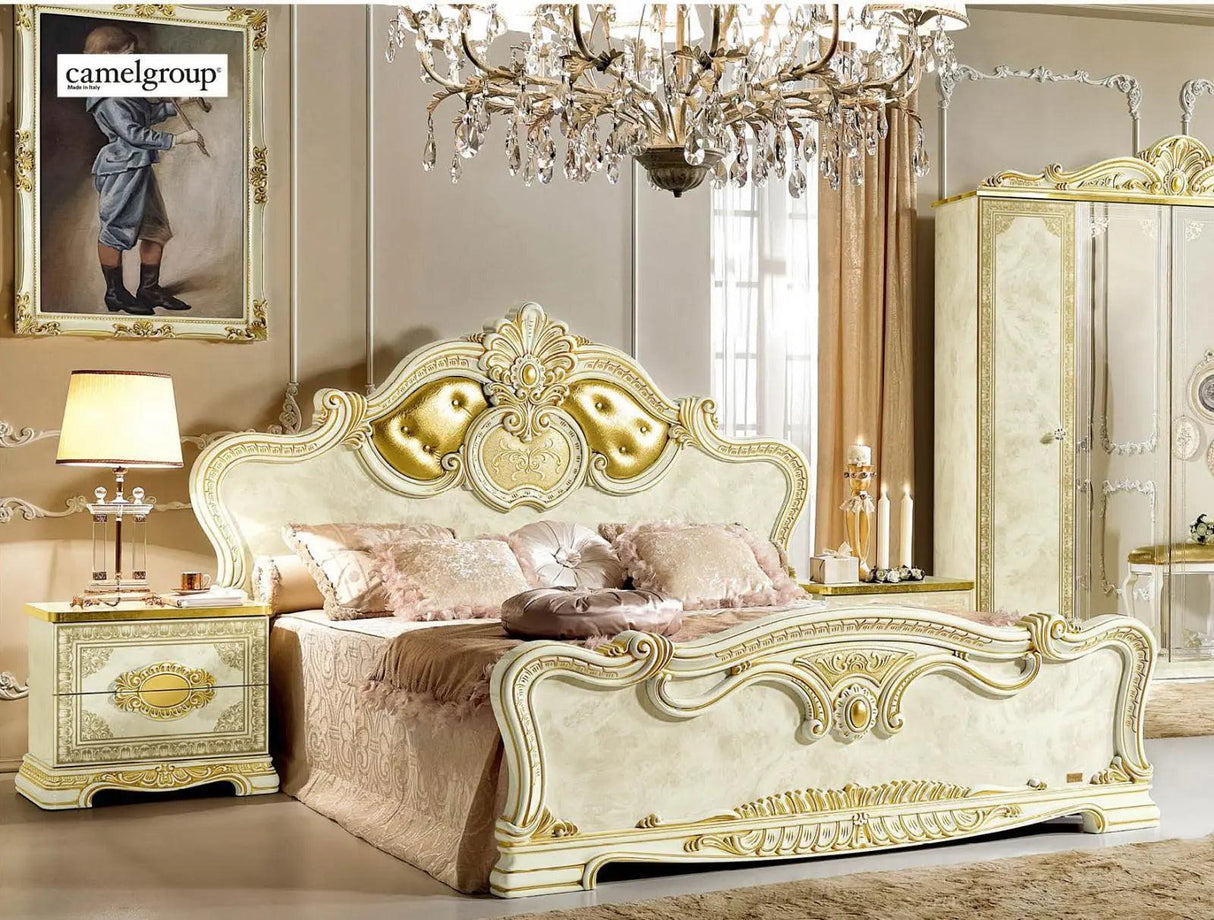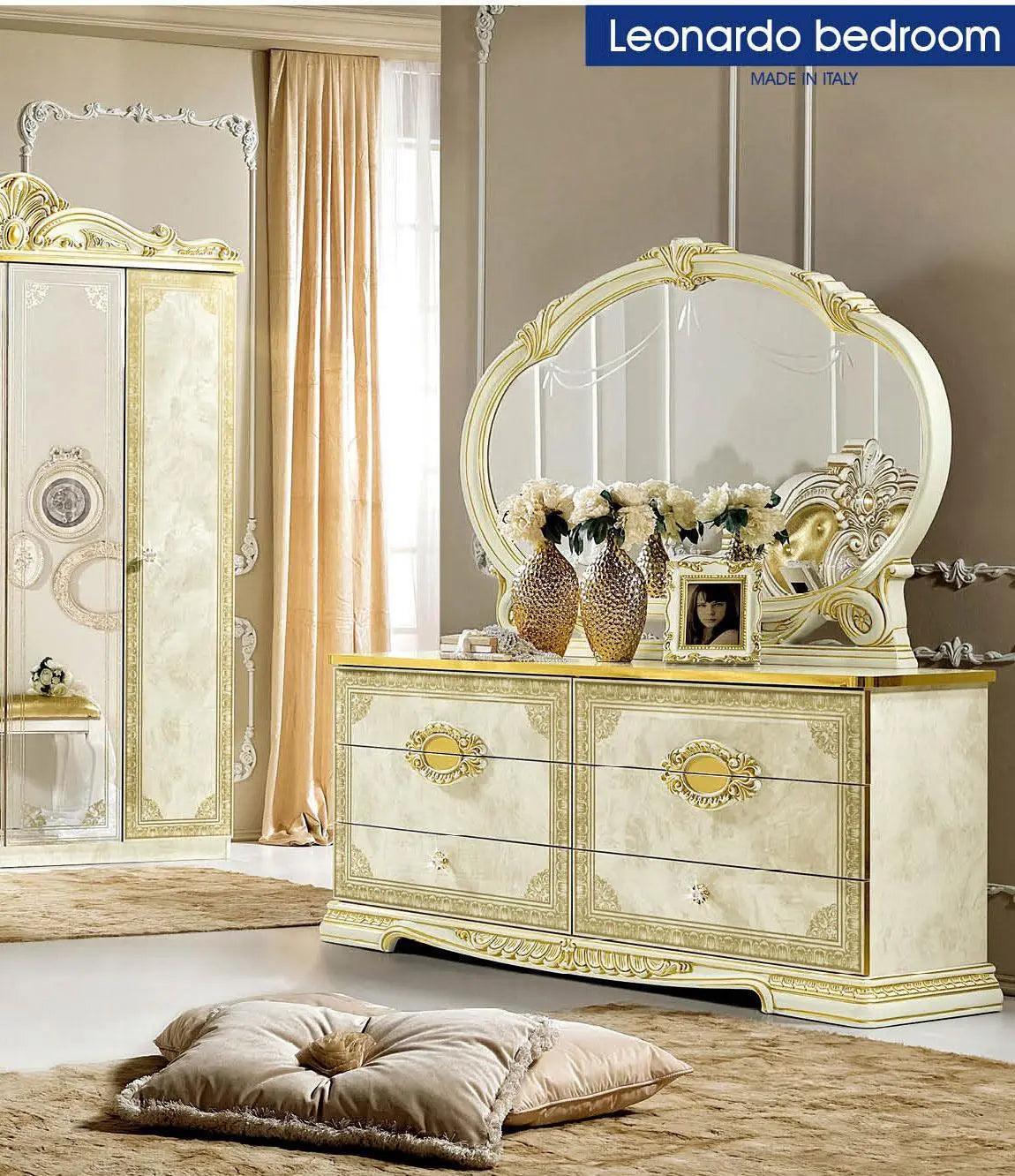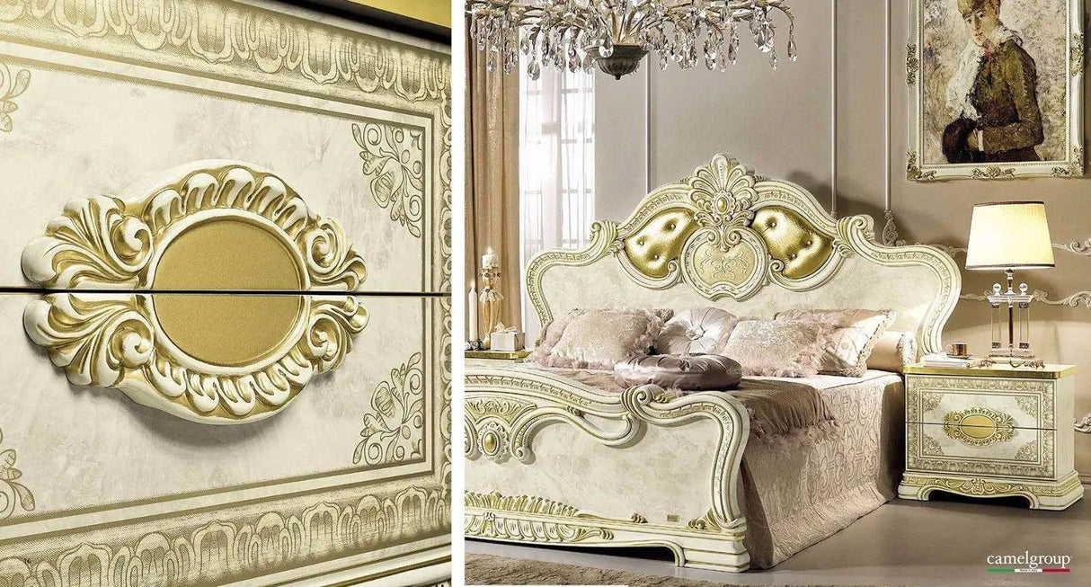 Juego de dormitorio Leonardo Classic Royalty en marfil brillante con detalles dorados | ESF