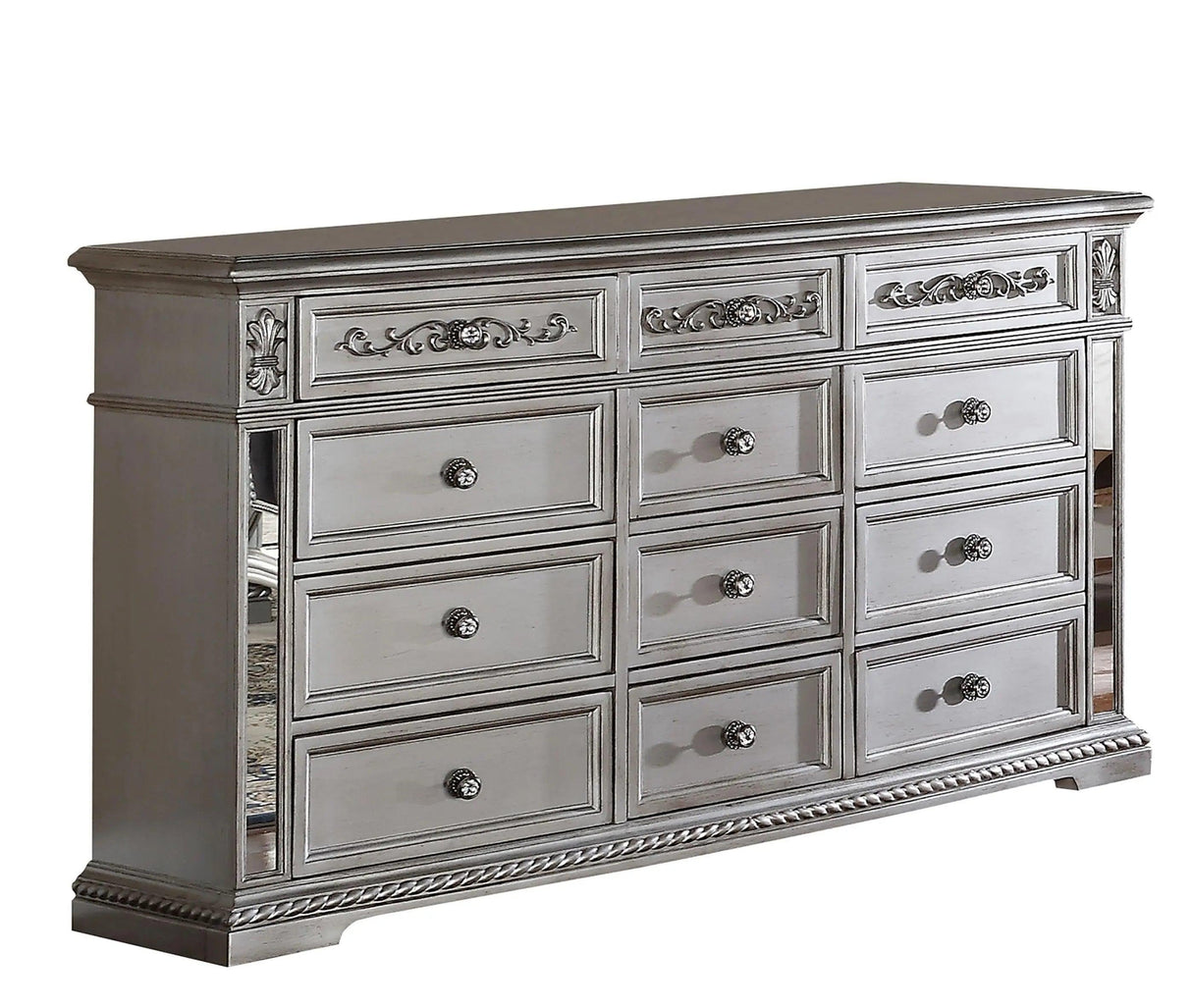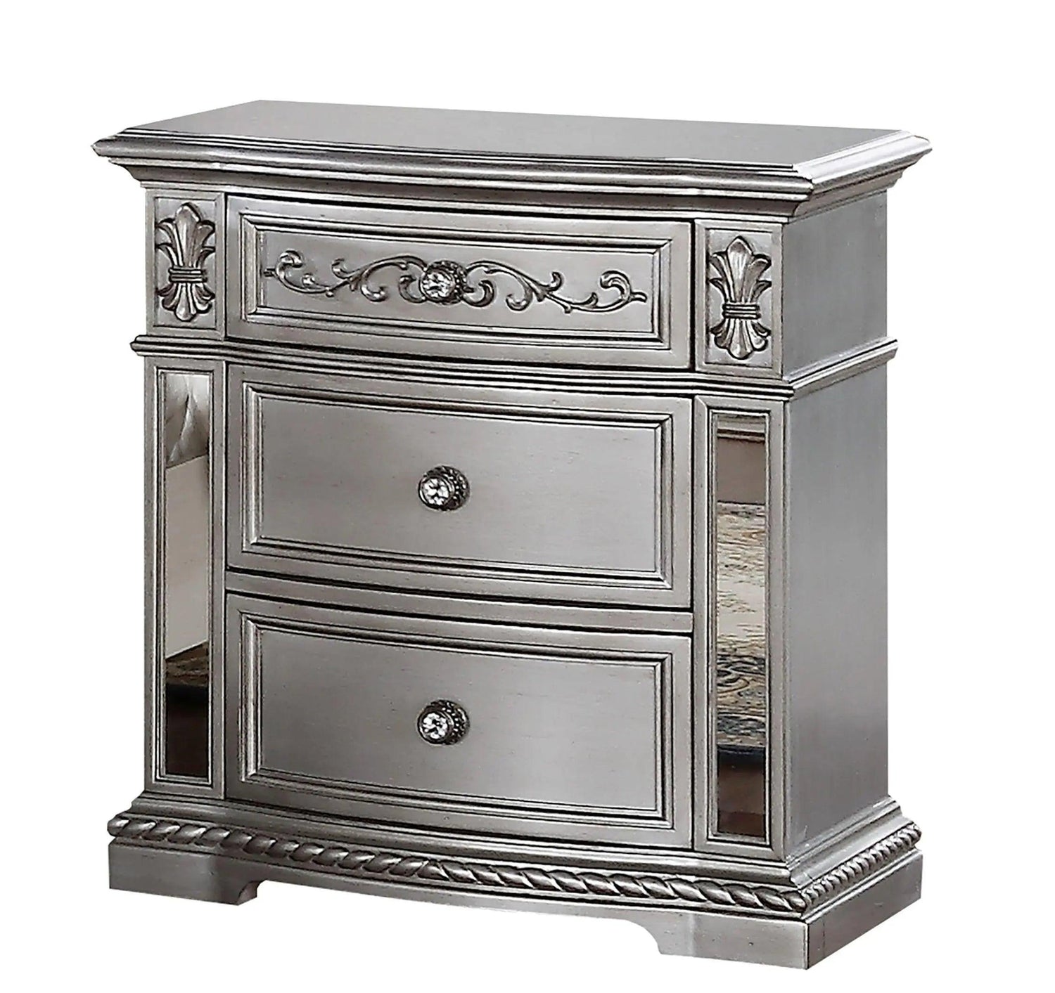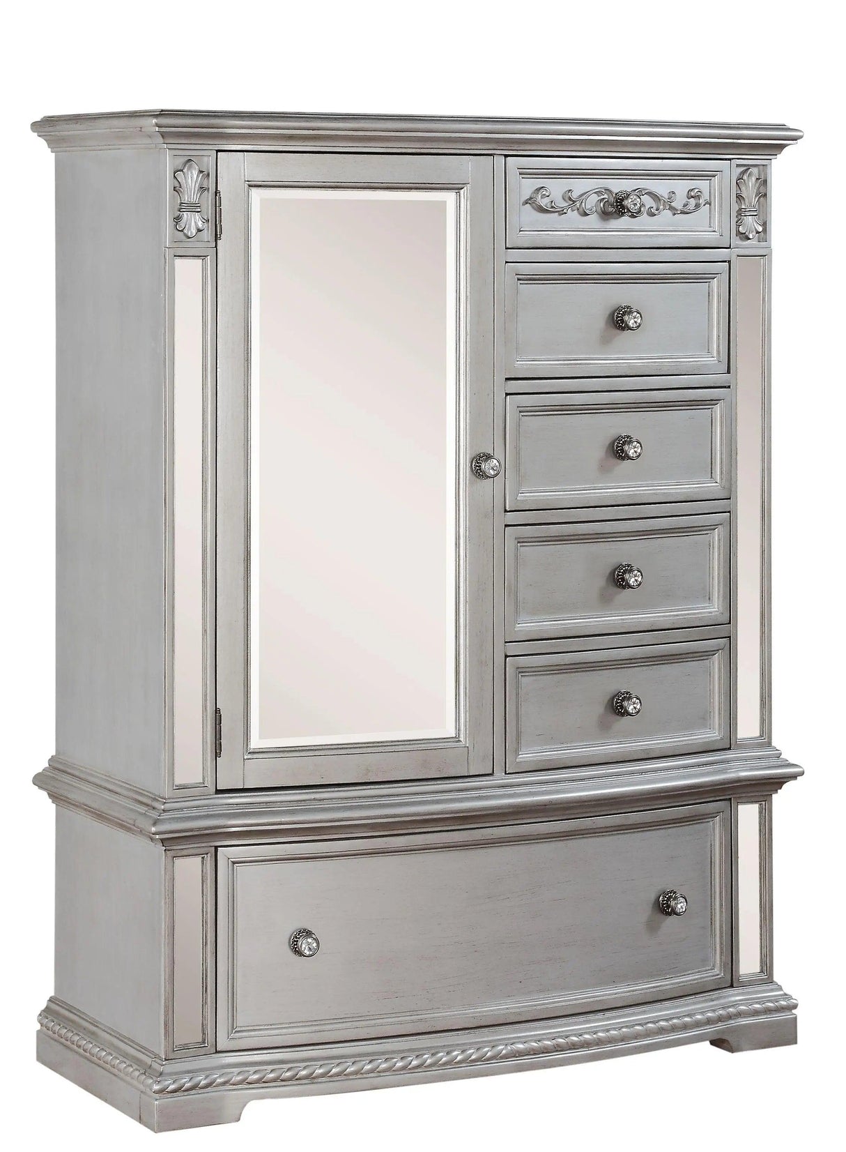 Juego de dormitorio de transición Pamela de 6 piezas con acabado plateado | Cosmos