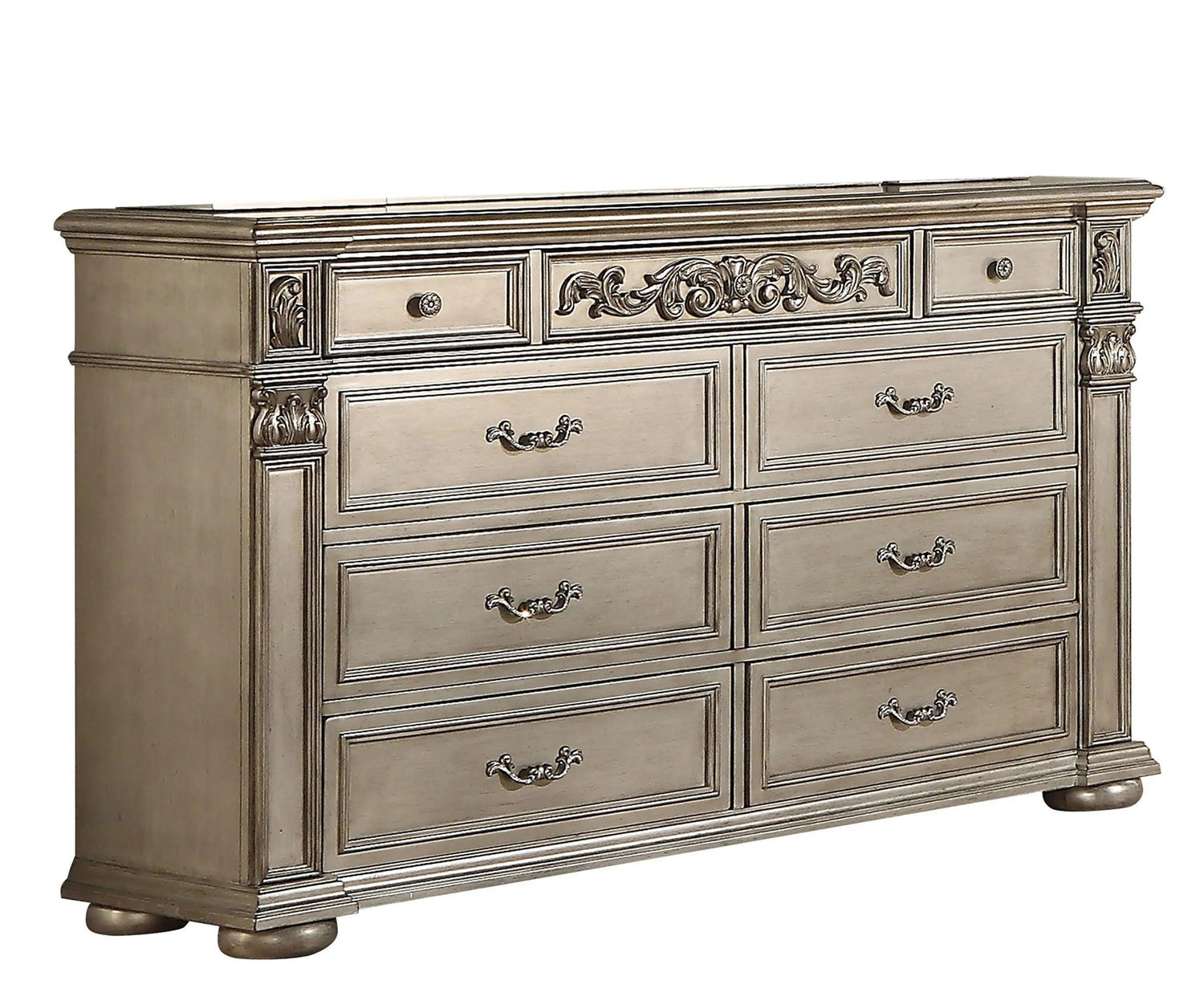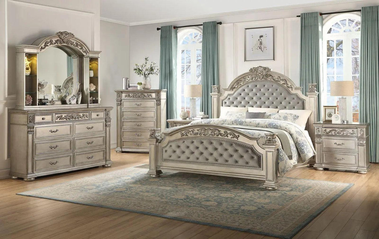 Juego de dormitorio tradicional Platinum de 6 piezas con acabado dorado | Cosmos