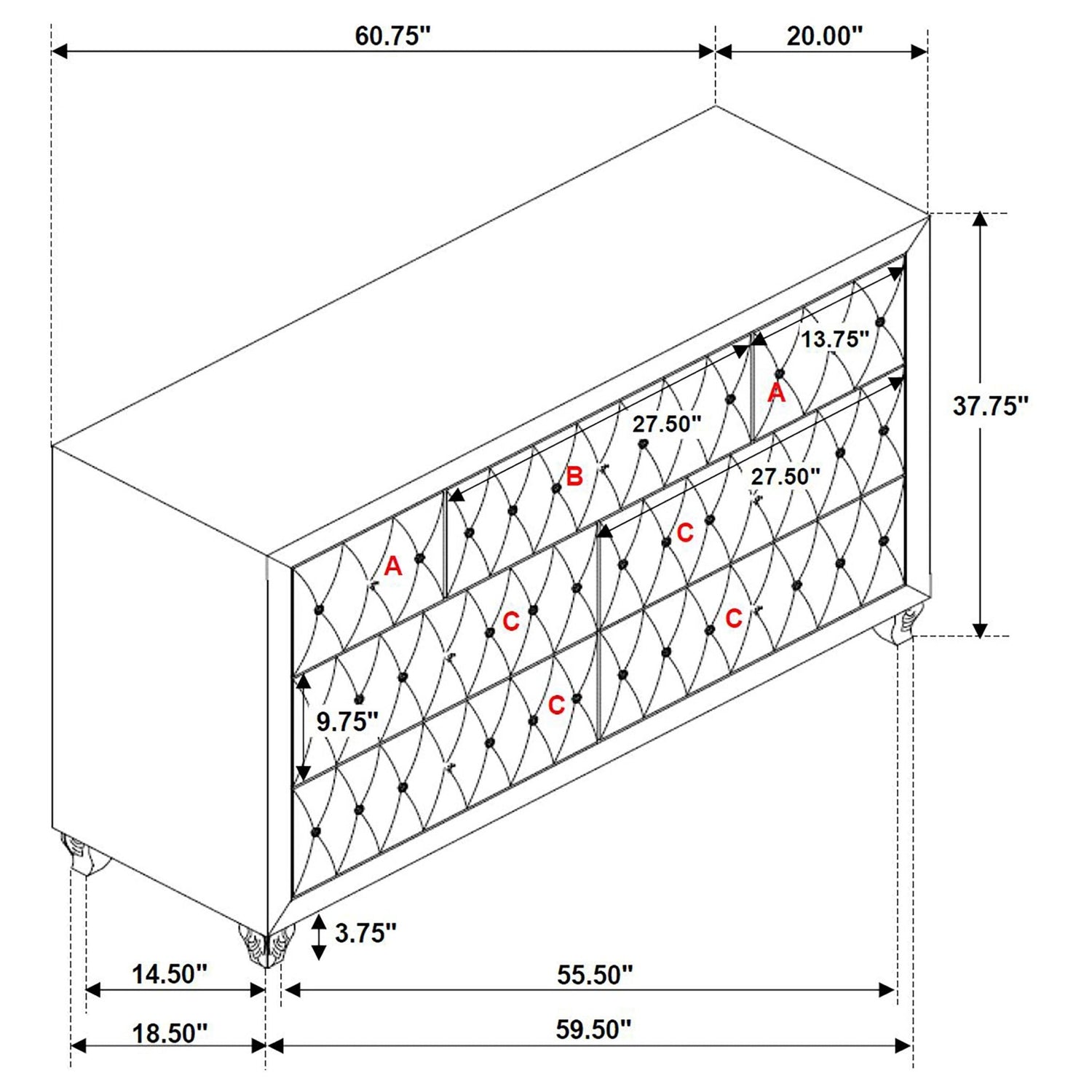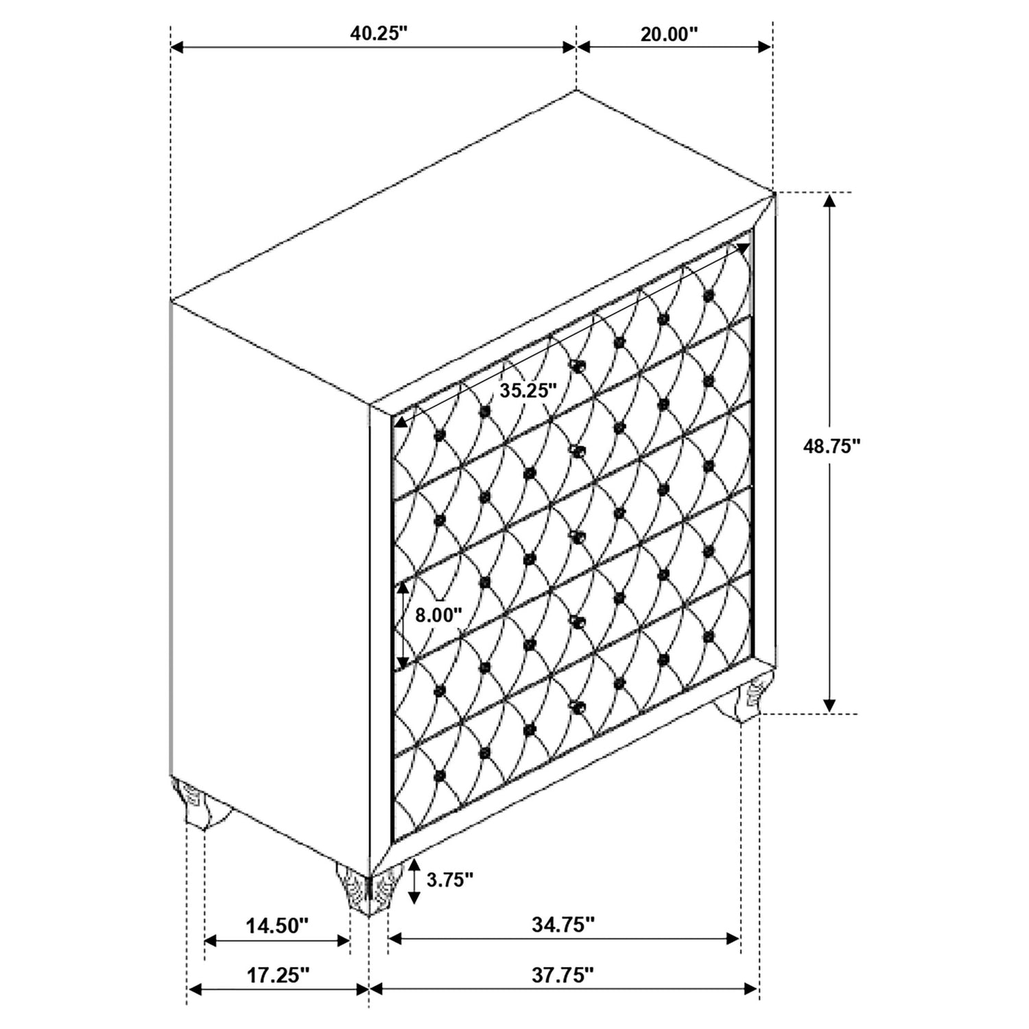 Majestuoso y refinado, este impresionante juego de dormitorio de cinco piezas crea una estética opulenta en cualquier hogar. Incluye cama, tocador, espejo, mesita de noche y cómoda, todo con un diseño glamuroso. Cada pieza luce un hermoso capitoné con botones que le da un aspecto exquisitamente chic. Un hermoso y brillante acabado metálico gris le da un toque de elegancia y dinamismo. Con un amplio y versátil espacio de almacenamiento, este fabuloso juego te permite organizarte fácilmente.