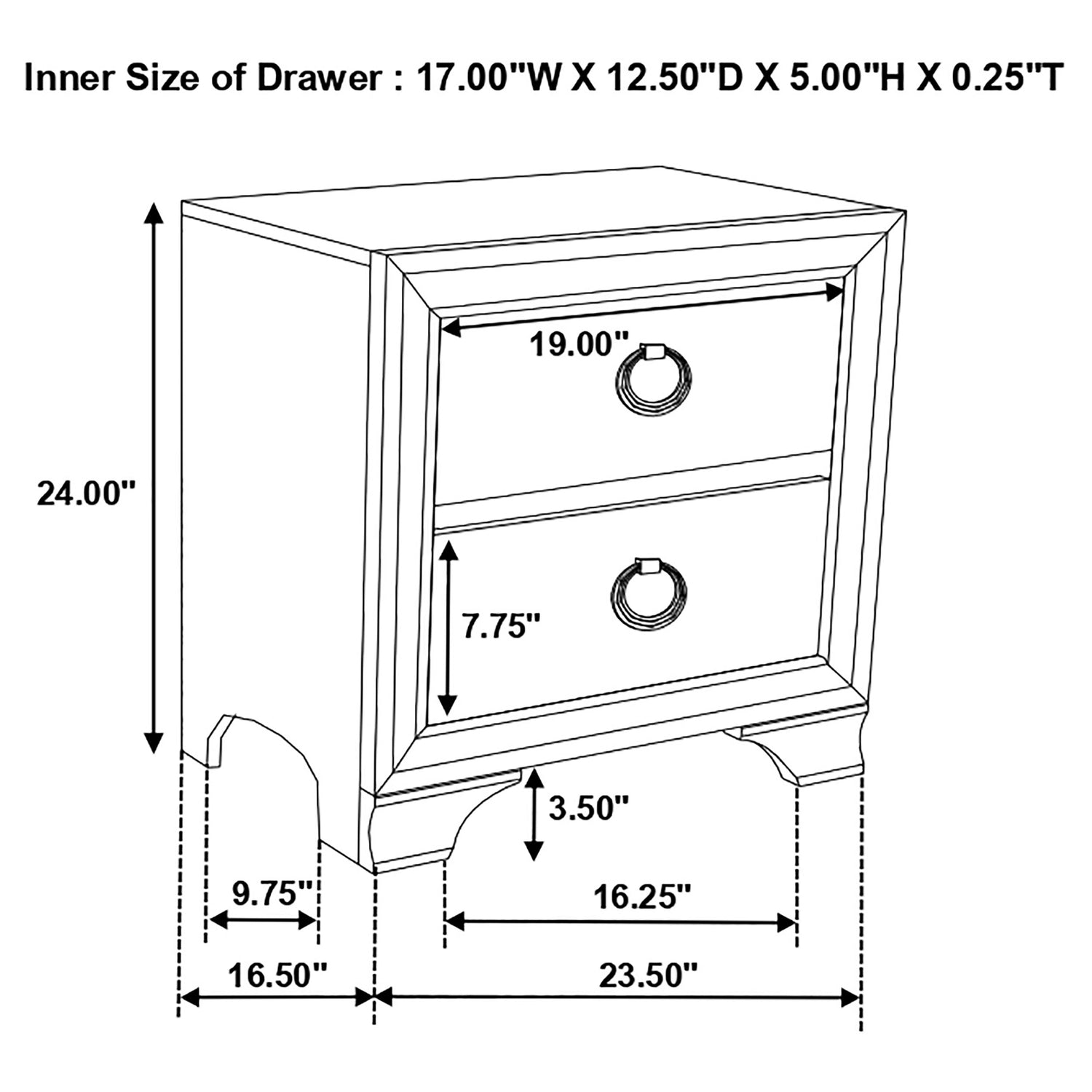 Mesita de noche: 23,5" de ancho x 16,5" de profundidad x 24,25" de alto