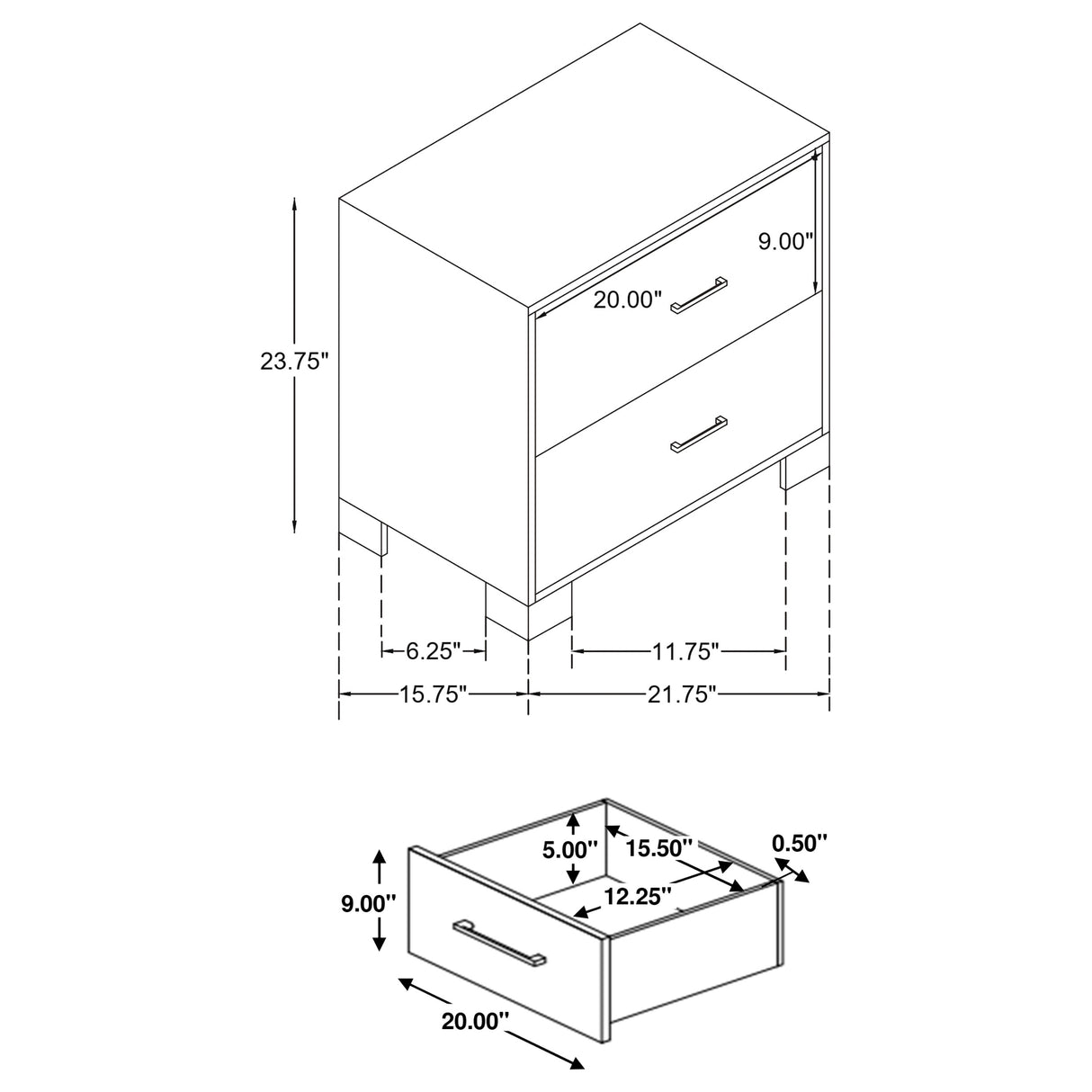 Mesita de noche: 21,75" de ancho x 15,75" de profundidad x 23,75" de alto