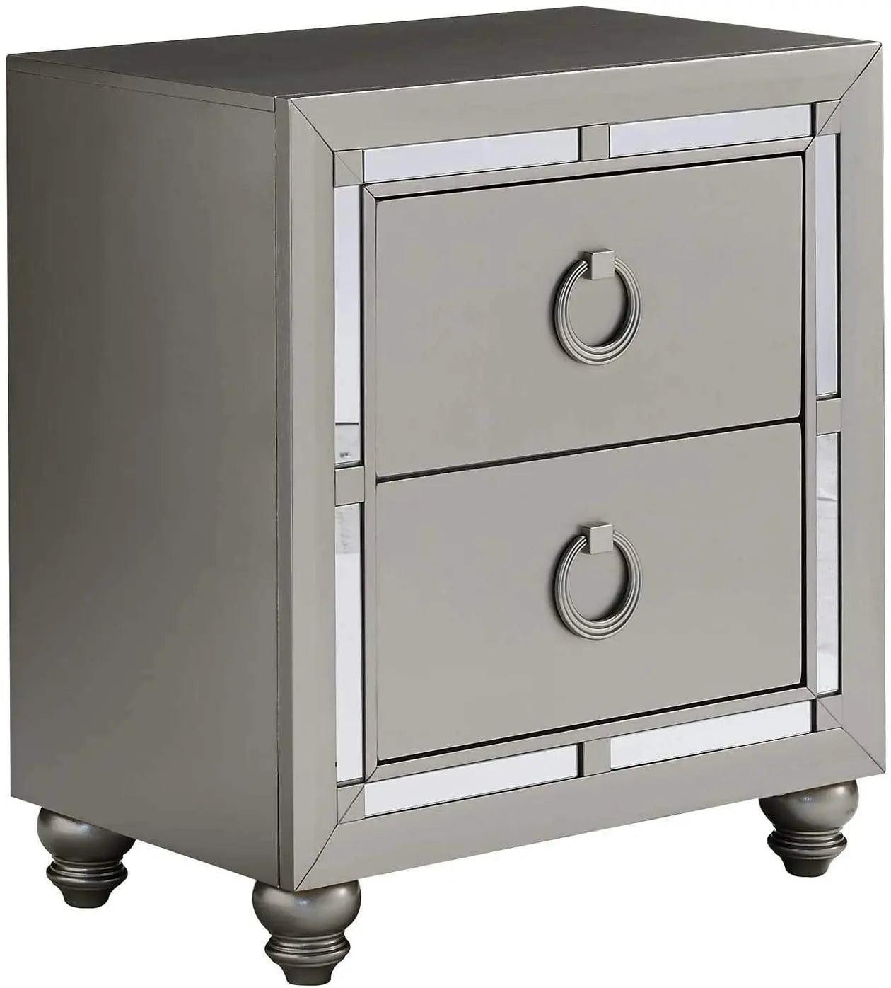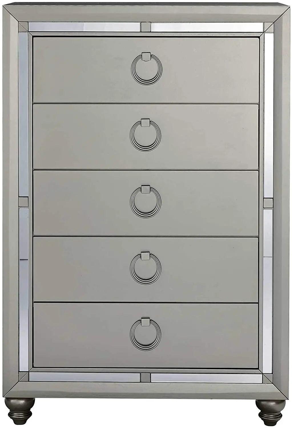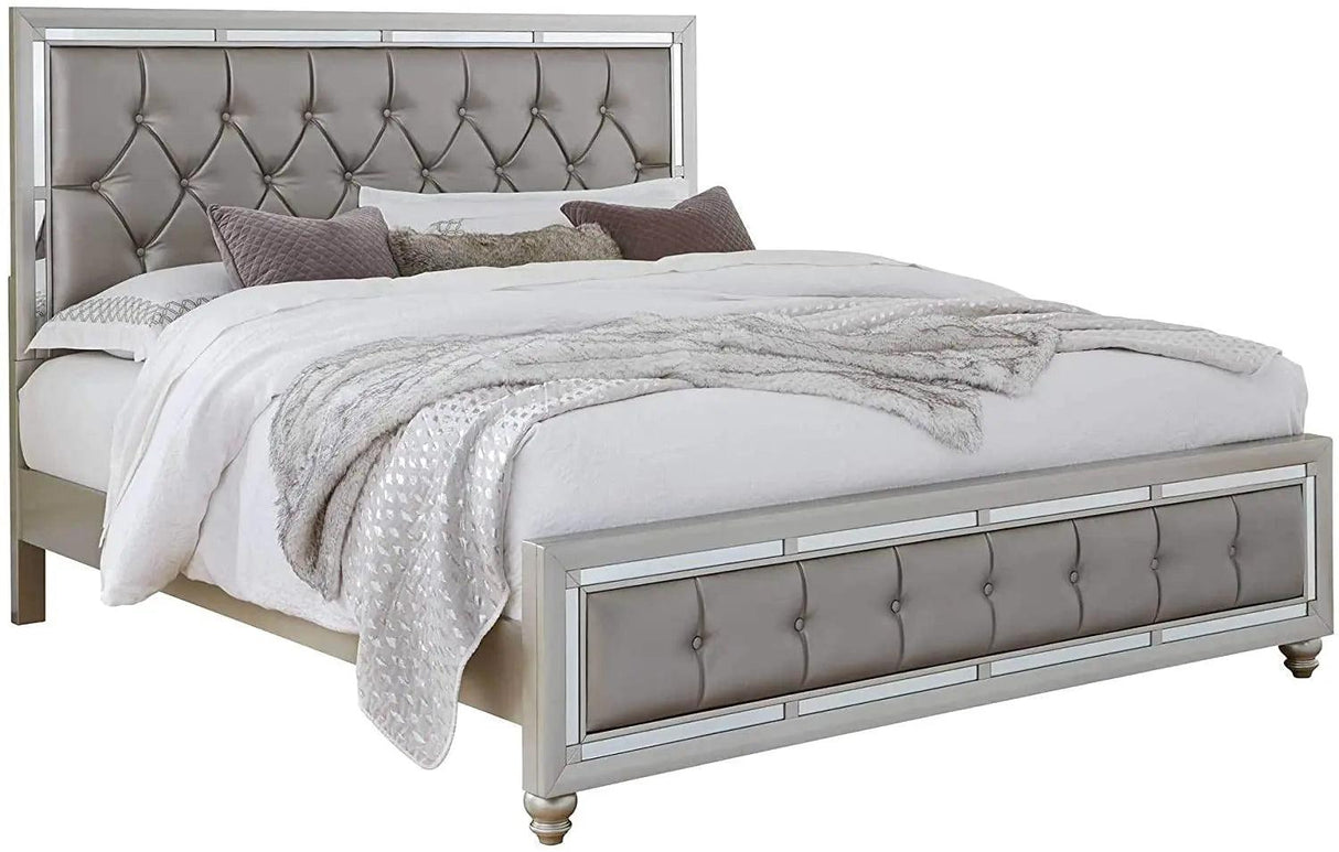 El Riley le da un toque contemporáneo al estilo clásico. Su lujoso acabado plateado y los detalles de espejo aportan un toque elegante y ultramoderno, mientras que la cabecera y el pie de cama capitoné evocan el estilo tradicional de los muebles artesanales de alta gama. Dale a tu dormitorio un toque contemporáneo con la Colección de Dormitorios RILEY. Fabricada en madera MDF y con un acabado color marfil, con polipiel perlada y detalles metálicos, esta colección sin duda revitalizará tu dormitorio principal. El dormitorio Riley de Global Furniture tiene un hermoso diseño moderno.