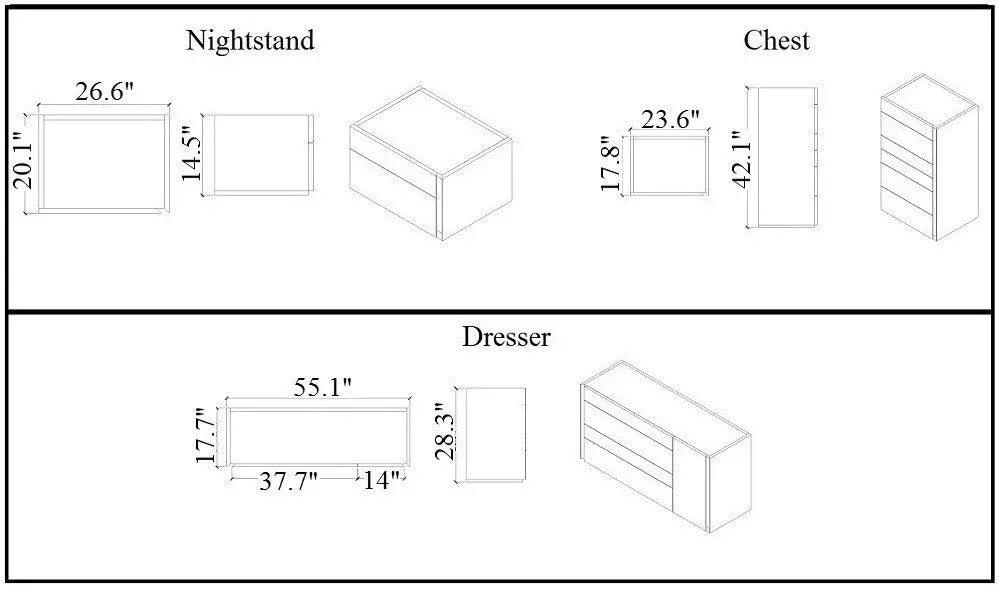 - Cómoda - 55,1" de largo x 17,7" de profundidad x 28,3" de alto