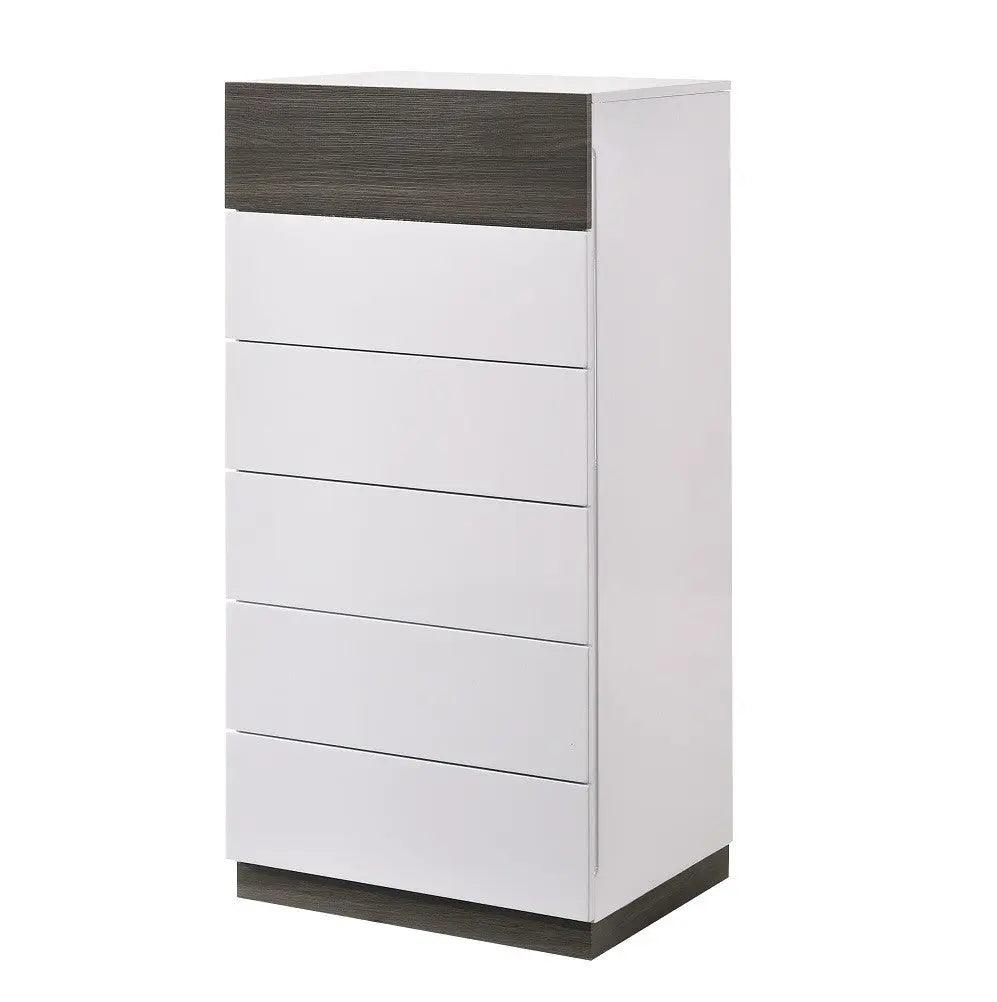 J&M se enorgullece de presentar el dormitorio Sanremo. La cama Sanremo B presenta un impactante contraste visual entre la chapa de nogal y una magnífica laca blanca. El cabecero cuenta con luces LED que se pueden encender y apagar para cambiar fácilmente el ambiente de cualquier dormitorio. Los muebles de la caja complementan a la perfección la cama y cuentan con cajones de extensión completa para mayor durabilidad. Disponible en tamaños Queen y King. No incluye colchón ni decoración.