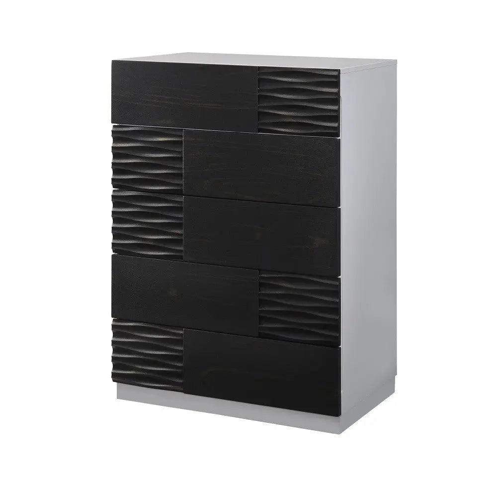 J&M se enorgullece de presentar el dormitorio Tribeca Premium. El cabecero presenta un acabado negro brillante, complementado con una lujosa tapicería gris para una apariencia elegante y una comodidad excepcional. Los muebles combinan negro y gris brillante para un toque único, e incluyen cajones de cierre suave de alta calidad para mayor durabilidad. El Tribeca sin duda aporta lujo refinado al dormitorio con un diseño elegante que cautiva. Disponible en tamaño Queen o King. Colchón y decoración no incluidos.