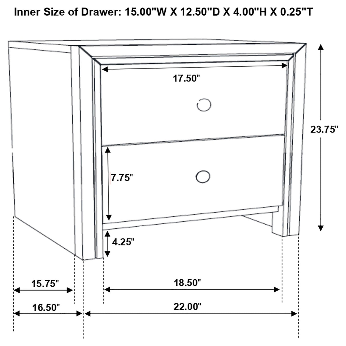 Mesita de noche: 22" de ancho x 16,5" de profundidad x 23,75" de alto