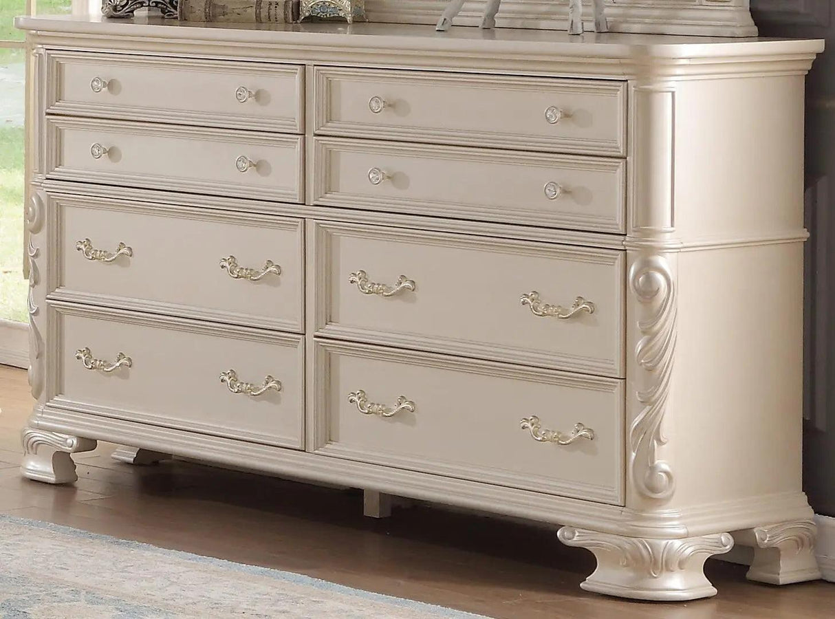 Juego de dormitorio tradicional Victoria de 6 piezas en acabado blanco roto | Cosmos