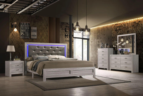 Juego de dormitorio moderno Yasmine White de 6 piezas con acabado gris | Cosmos
