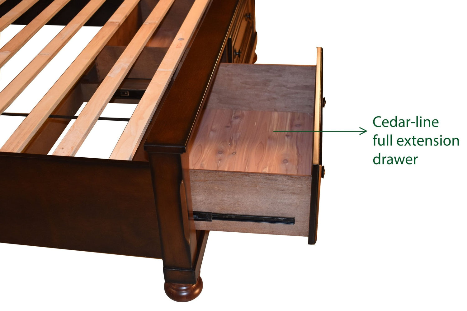 - Cajón de almacenamiento revestido de cedro