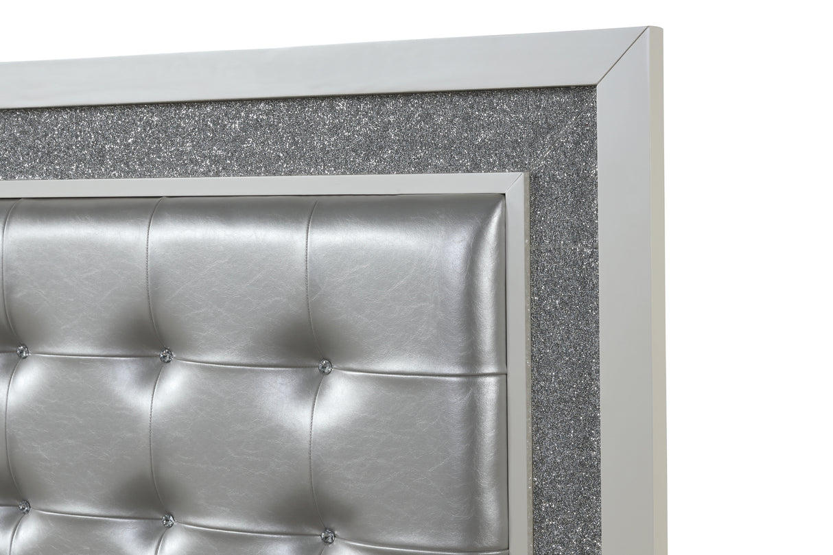 ¿Buscas renovar tu dormitorio? Has llegado al lugar indicado. Este juego de dormitorio único y perfecto transformará tu habitación como ningún otro en el mercado. Glamoroso, atractivo y lujoso son solo algunas palabras para describir esta hermosa pieza. Es el mueble perfecto para realzar el carácter y la atmósfera de tu dormitorio. Cada pieza de este juego de dormitorio está equipada con luces LED que realzan el ambiente, y este toque de luz LED ofrece el toque perfecto incluso después de que se apaguen las luces. El cabecero tapizado presenta un capitoné con canales, lo que le da un toque extra de estilo a esta glamurosa pieza. El patrón de cristales bajo la luz le da mayor profundidad. Encontrarás este hermoso patrón similar al cristal cerca de todas las luces en cada mueble. Este juego incluye una cama tamaño queen. Todas las piezas cuentan con un amplio espacio de almacenamiento para que nunca te quedes sin espacio para guardar tus artículos esenciales. Los tiradores de los cajones tienen un patrón de anillos entrelazados que resulta agradable a la vista. La cómoda cuenta con dos tiradores en cada cajón para mayor comodidad. Estamos seguros de que el tocador será tu mueble favorito en tu habitación gracias a su belleza y utilidad. Será el lugar ideal para tus selfis frente al espejo. Pero eso no es todo; este juego de dormitorio está hecho con madera maciza de primera calidad que durará años. Dale glamour a cualquier dormitorio con este diseño superventas. Deléitate con los exquisitos detalles mientras estás despierto y disfruta de un sueño reparador al final del día.