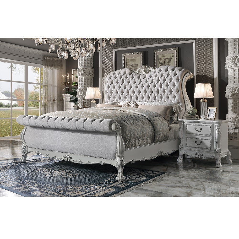 Cama Queen Dresden BD02241Q de tela y acabado blanco hueso | Acme está agotado y se enviará tan pronto como vuelva a estar disponible.
