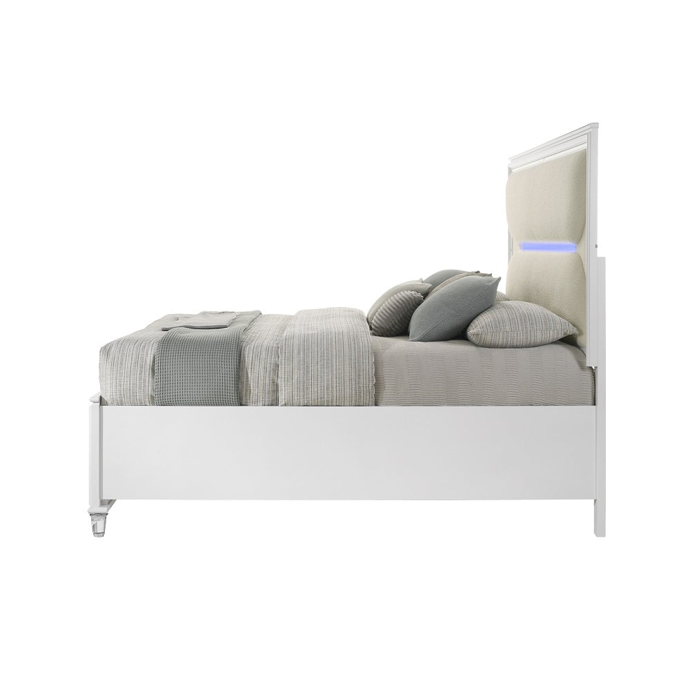 Acme - Cama Tarian Queen con LED y almacenamiento BD02317Q Acabado en bouclé blanco y blanco perla