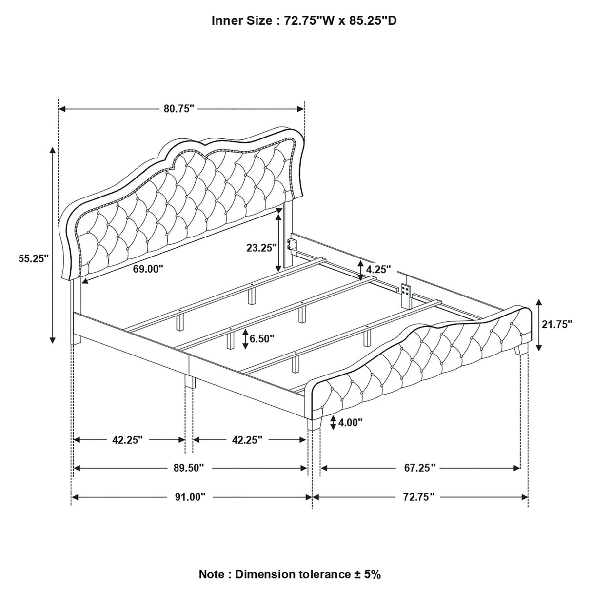 Cama tapizada Bella California King con paneles en gris | Coaster