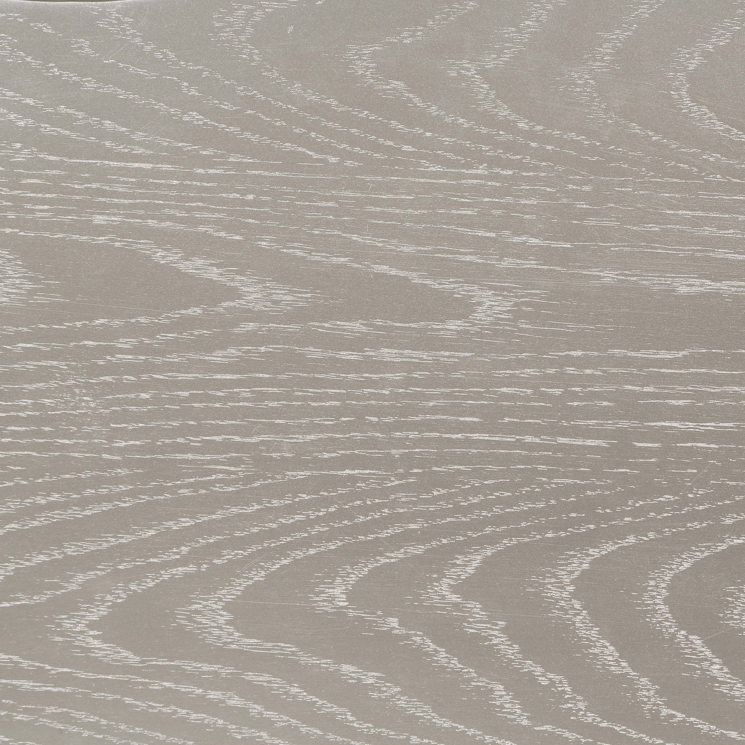 Una estructura con acabado de roble plateado le da un elegante aspecto perlado, realzado por paneles brillantes que se integran a la perfección con la moldura de corona y los detalles decorativos. Sus patas delgadas y cónicas ofrecen una sutil elevación, permitiendo un almacenamiento adicional debajo.