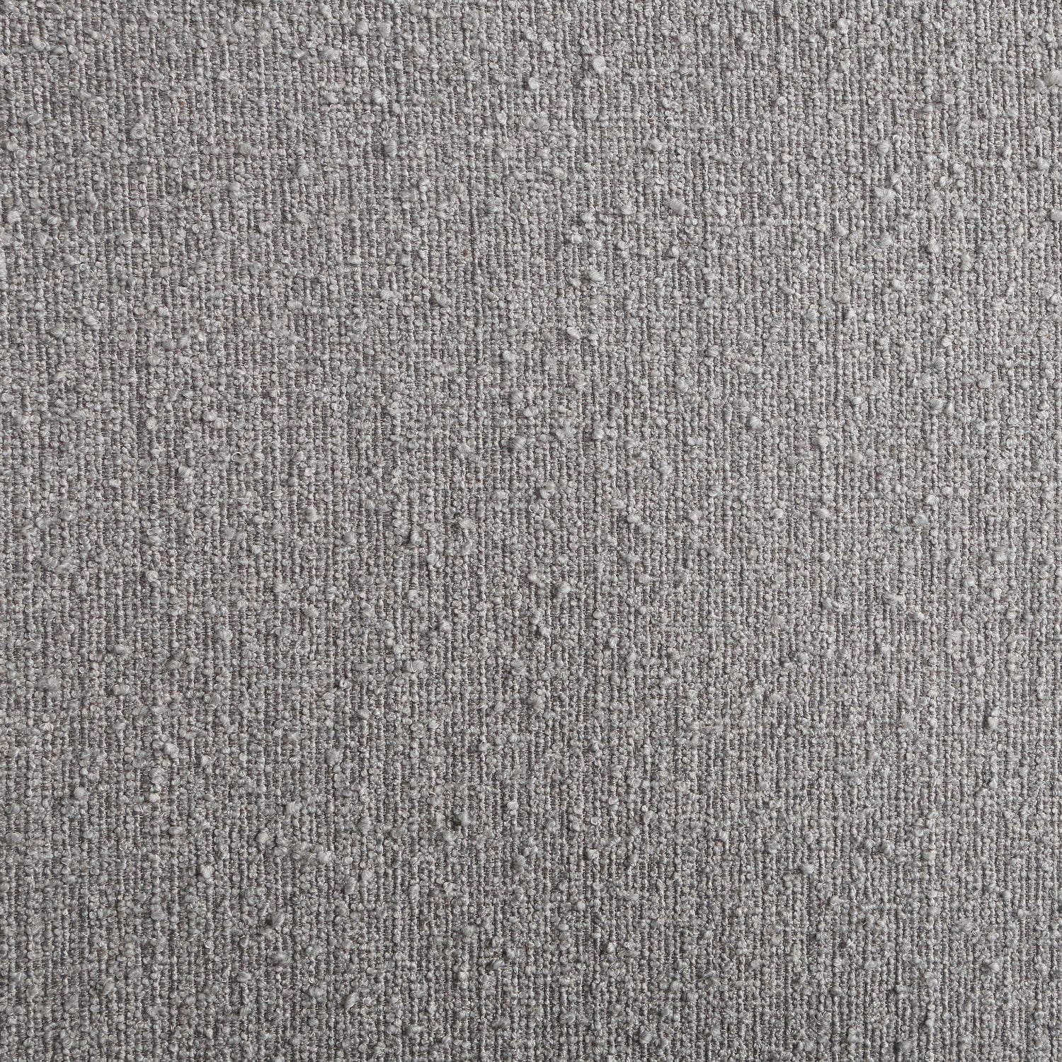 - La cabecera de suave curvatura y los laterales gruesos están acolchados con una moderna tela bouclé gruesa de color gris.