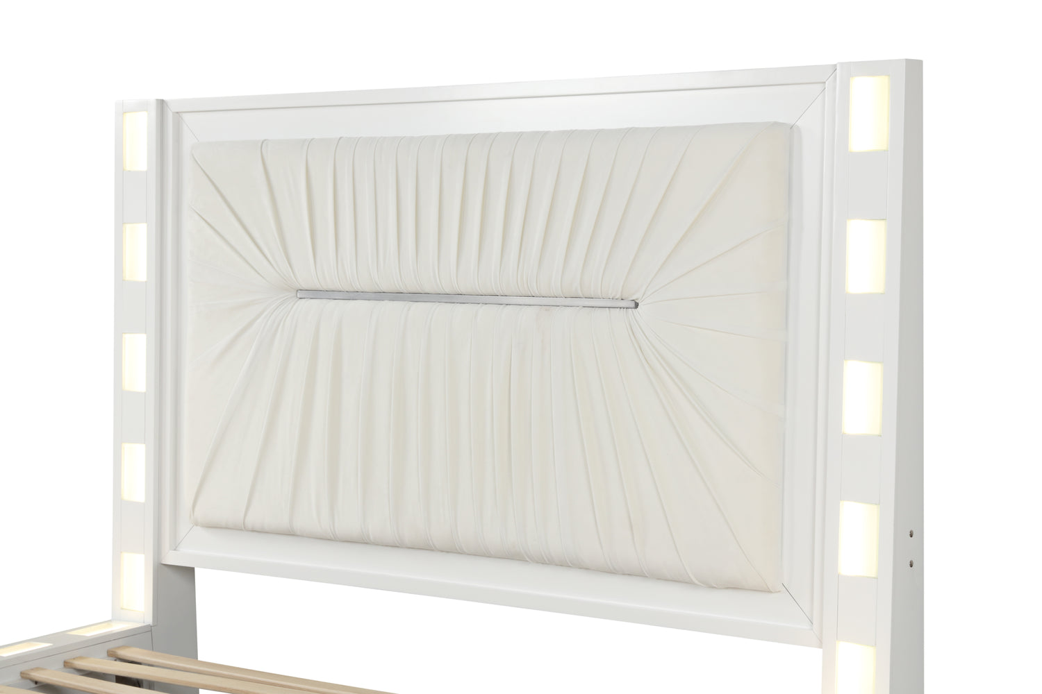 Cama Queen Coco LED de madera en color blanco lechoso: características y detalles clave