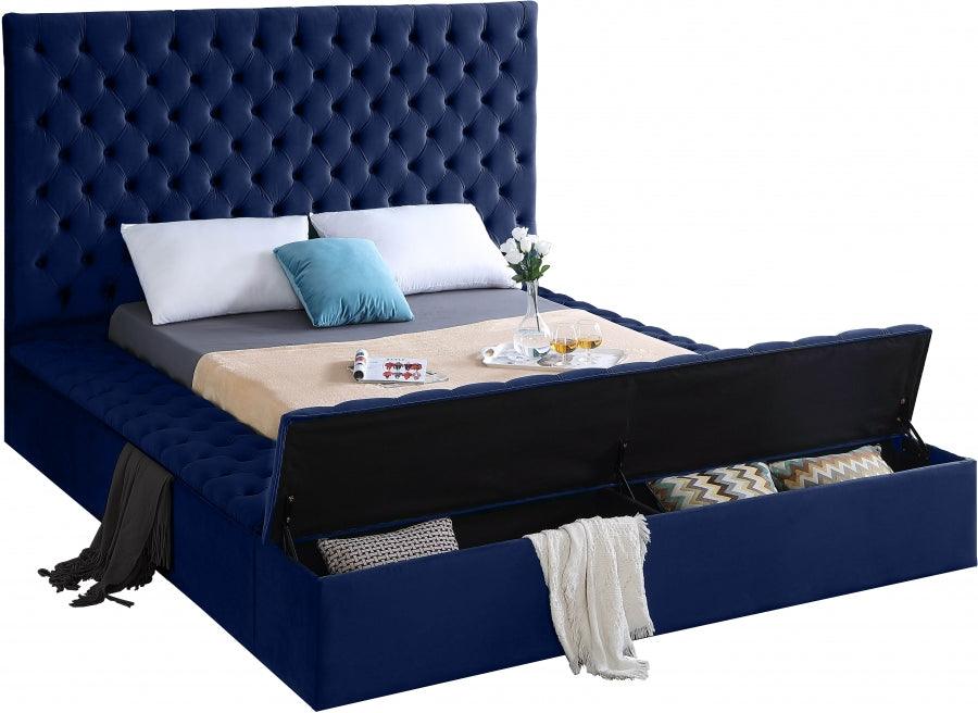 Meridian Furniture - Cama King Bliss de terciopelo azul marino - BlissNavy-K