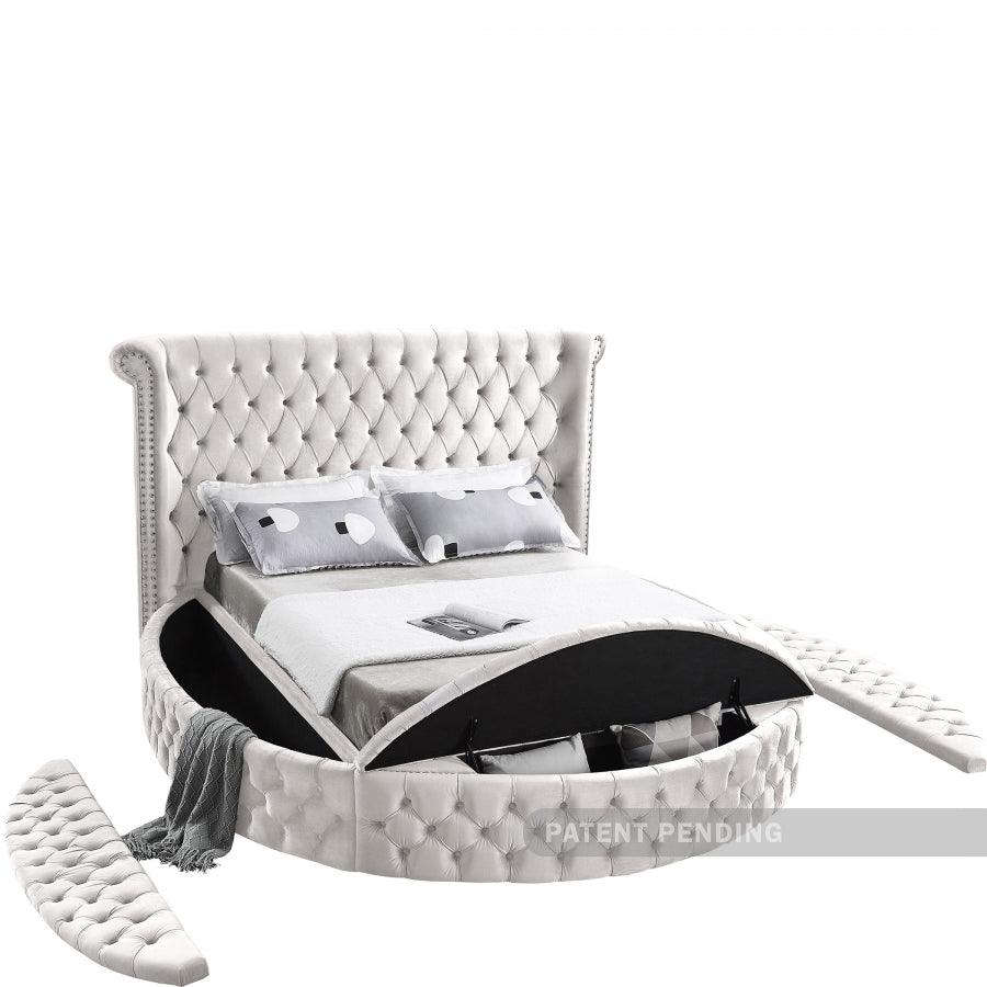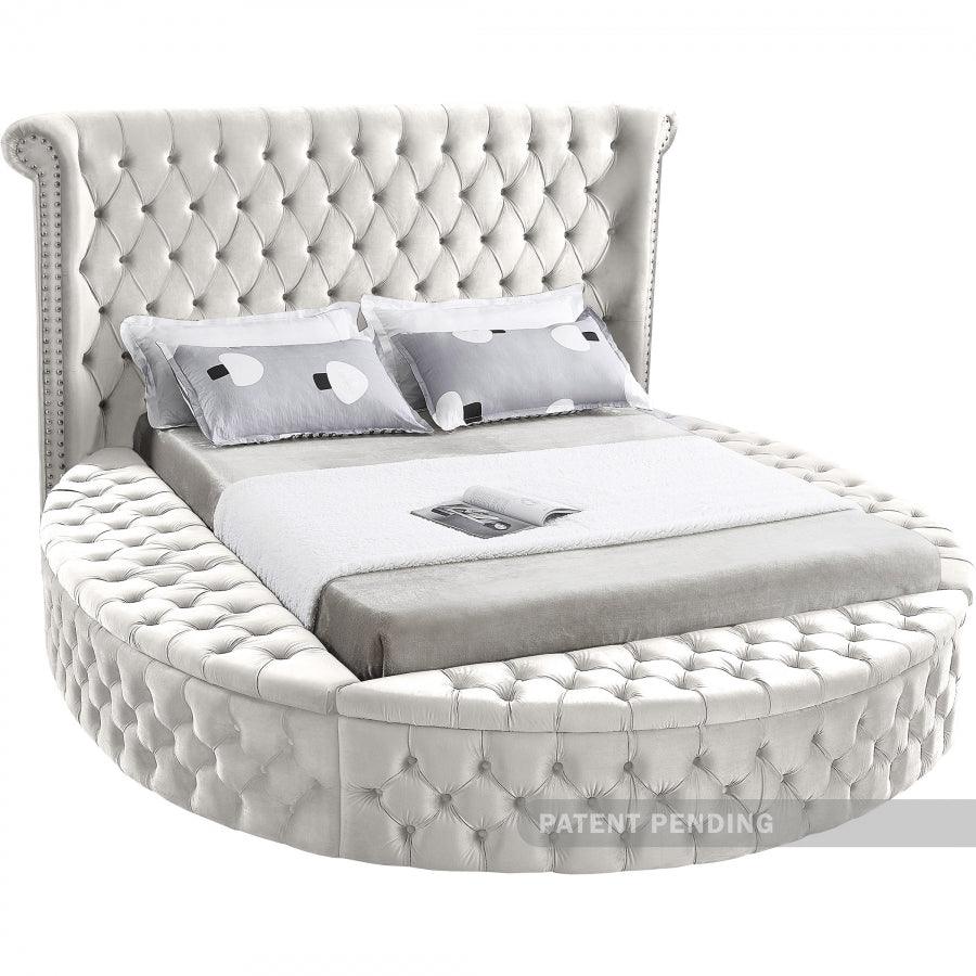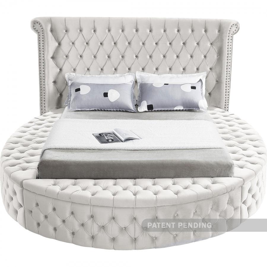 Cama Queen de terciopelo de lujo en color crema - Luxuscream-Q | Meridian