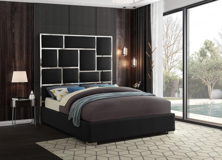 Cama Queen Milan de piel sintética negra - Milanblack-Q | Meridian