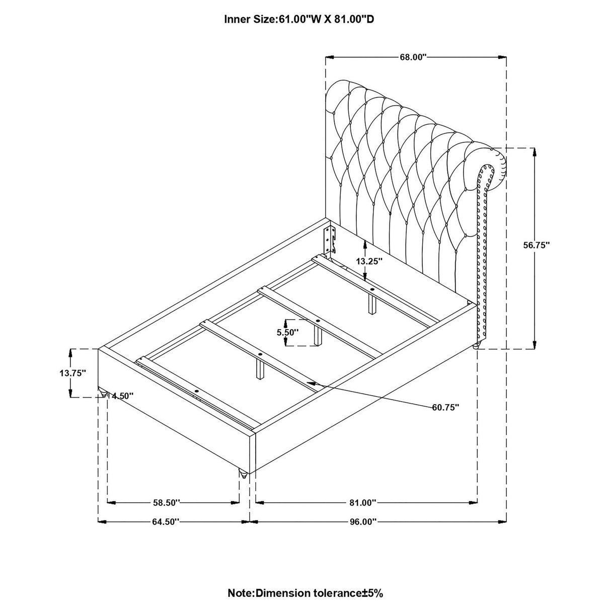 Cama Queen tapizada Devon con paneles en beige | Coaster está agotado y se enviará tan pronto como vuelva a estar disponible.