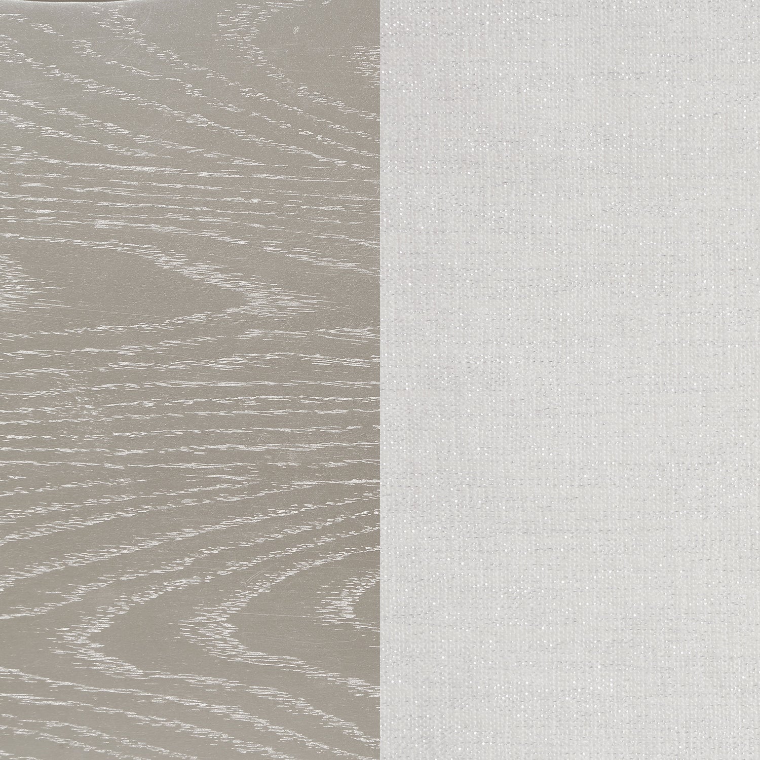 Realza tu dormitorio con esta elegante y glamurosa cama de plataforma. La cabecera y el pie de cama de doble arco curvo están diseñados con un inserto acolchado de capitoné acanalado que le da un llamativo diseño. Cada pieza acolchada está tapizada en una suave tela color marfil que le da una paleta de colores neutros. La estructura con acabado en roble plateado le da un elegante aspecto perlado, realzado por paneles brillantes que se integran a ras de la moldura de corona y los detalles decorativos. Las patas delgadas y cónicas ofrecen una sutil elevación, permitiendo un almacenamiento adicional debajo.