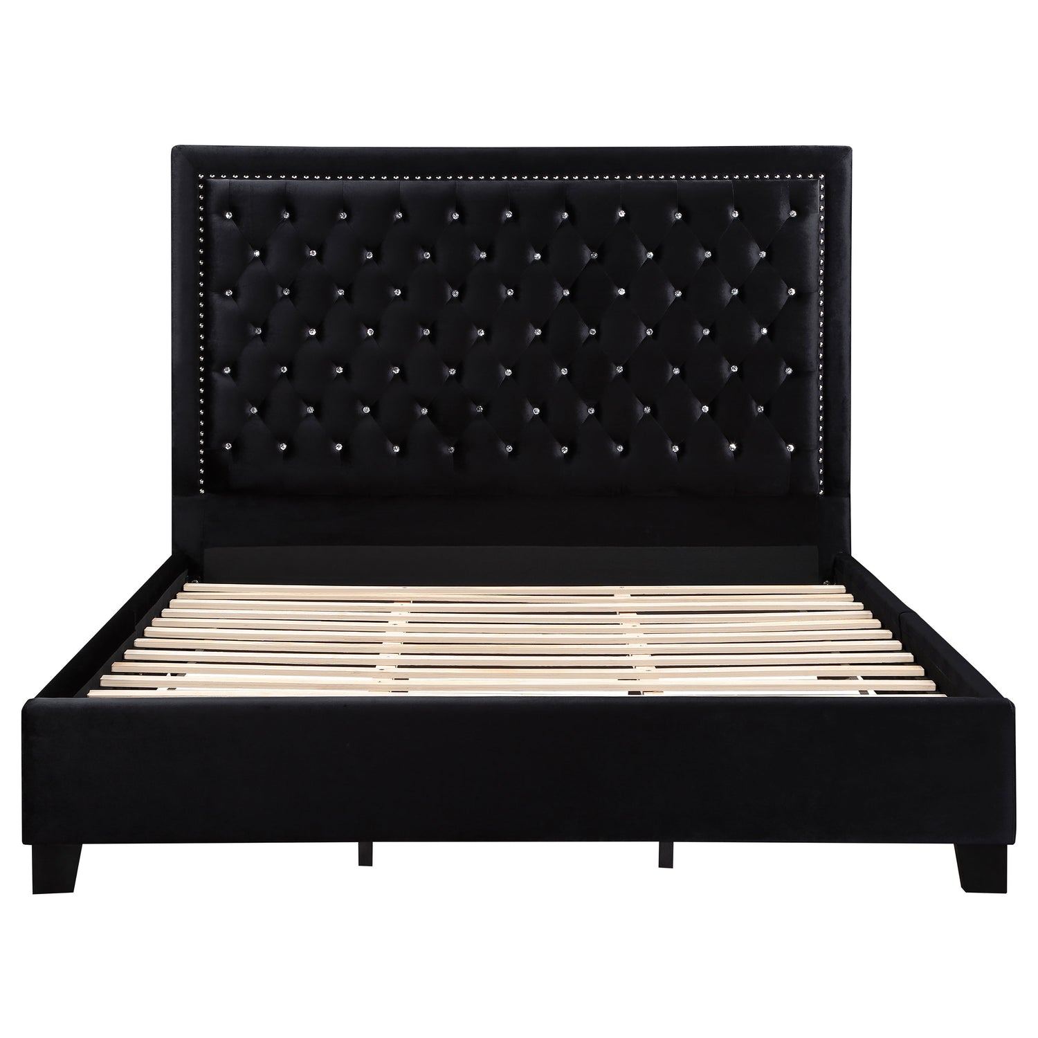 Cama Queen Hailey tapizada con paneles, color negro | Coaster