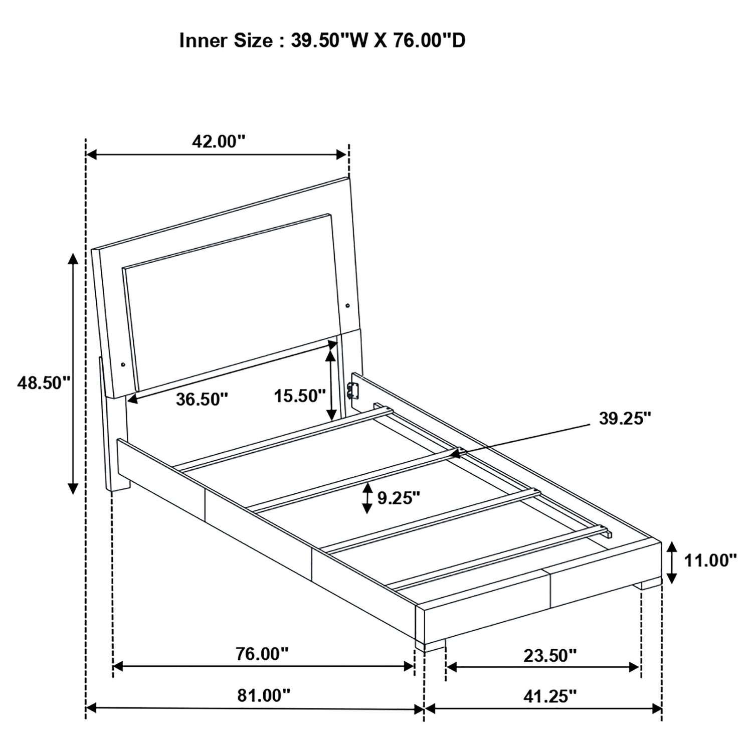 Cama individual - Felicity Wood Twin con panel LED blanco de alto brillo