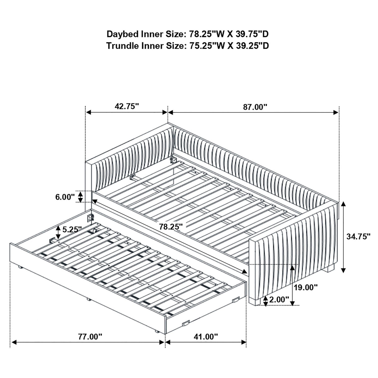 Sofá cama individual tapizado Brodie con cama nido, gris | Coaster está agotado y se enviará tan pronto como vuelva a estar disponible.