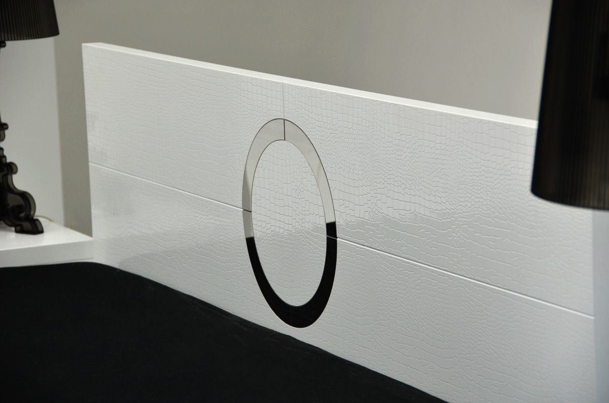 La cama moderna lacada Ovidius AW223-180 presenta un moderno y delicado detalle circular reflectante en el cabecero, que combina a la perfección con el lacado blanco brillante de cocodrilo que cubre toda la cama. Sus líneas limpias y rectas resaltan con la simplicidad de su diseño y su color blanco, una clara declaración de modernismo.