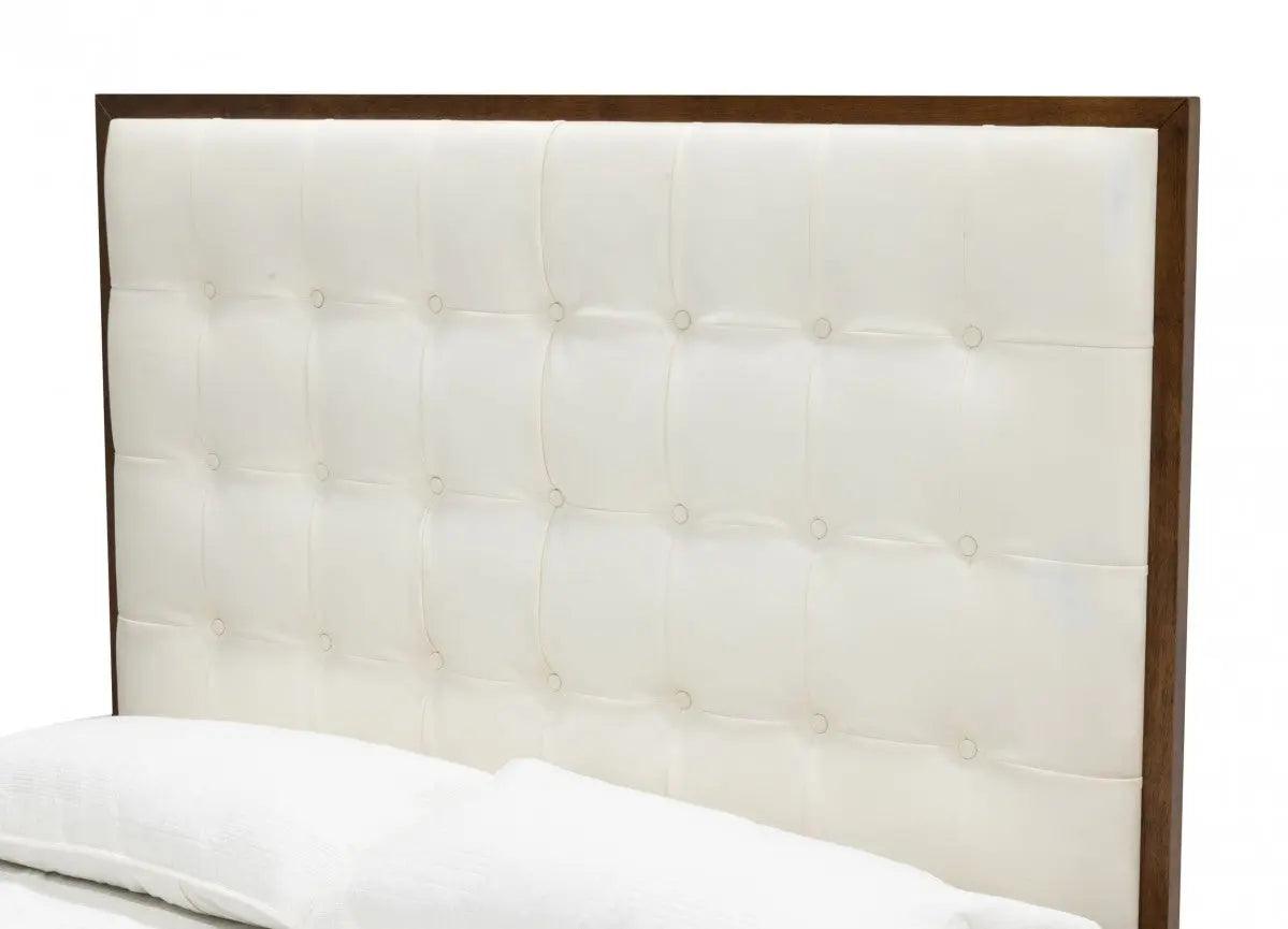 Cama Modrest Amberlie de cuero vegano blanco y nogal - VGMABR-96-WAL-BED | VIG