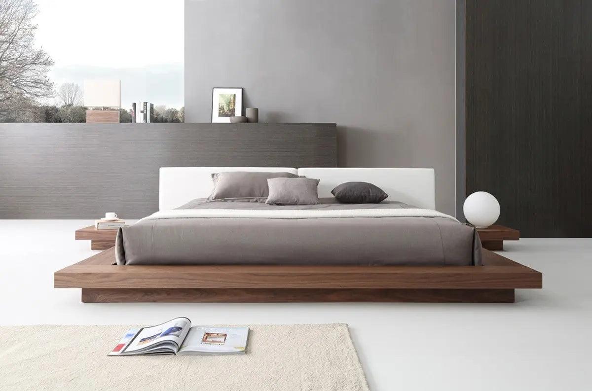 Cama moderna con plataforma Modrest Opal en nogal y blanco - VGVCBD855-WALWHT | VIG