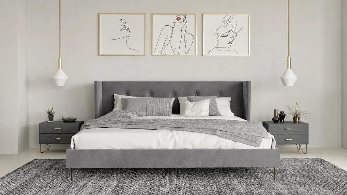Cama moderna Nova Domus Bryan de terciopelo gris y dorado Vgmabr-82 - Reina está agotado y se enviará tan pronto como vuelva a estar disponible.