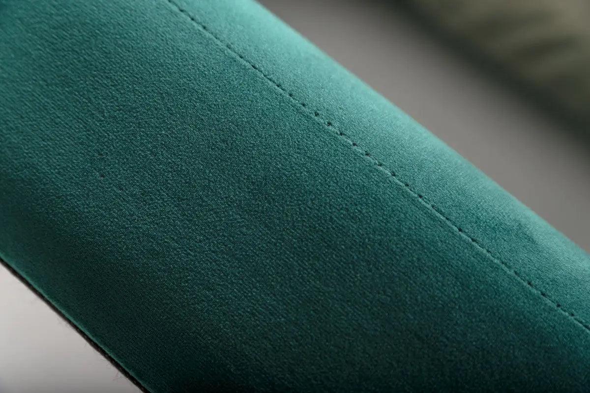 La cama moderna Modrest Durango de tela verde y nogal irradia elegancia y opulencia. Totalmente tapizada en suave terciopelo verde hoja, cuenta con una base de colchón de láminas hundidas y un cabecero capitoné. Con bordes laterales, el cabecero ofrece un soporte óptimo al sentarse, ya que permite apoyar la cabeza. El diseño de láminas permite que el aire entre el colchón y la cama, para un ambiente más limpio y saludable. Las patas de madera maciza de caucho con acabado en nogal aportan un toque de glamour a su aspecto general, proporcionando un soporte robusto. Requiere poco montaje, esta moderna cama de tela verde y nogal invita a un buen descanso y crea un ambiente cálido y relajante en su dormitorio moderno.
