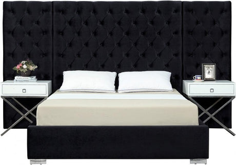 Cama Queen Grande de terciopelo negro - Grandeblack-Q | Meridian