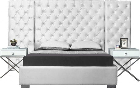 Cama King Grande de terciopelo blanco - Grandewhite-K | Meridian