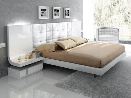 Cama Granada Queen con plataforma en laca blanca de alto brillo - Granada Queen | ESF
