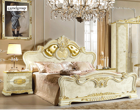 Cama Leonardo Queen con paneles en color marfil y dorado - Leonardobedq.S | ESF