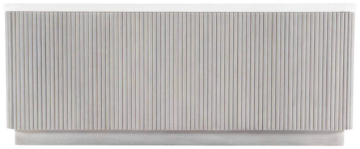 Bernhardt presenta la mesa de cóctel Colonnade de la colección Bernhardt Living : una pieza central arquitectónica de tonos suaves y forma escultural. El tablero cuadrado está acabado en imitación piedra en tonos claros con esquinas redondeadas, mientras que la base está elaborada en madera de gmelina con laterales acanalados que evocan las columnas clásicas. Sus discretas ruedas resistentes le aportan movilidad, haciendo que este diseño sea tan práctico como elegante.