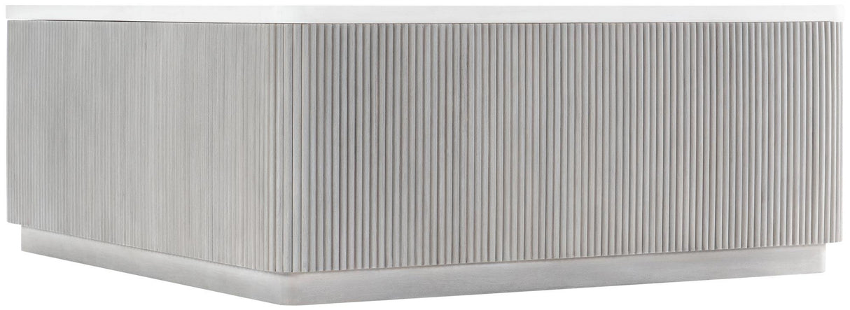 Mesa de cóctel cuadrada Colonnade de 42 pulgadas con imitación de piedra y madera estriada – Bernhardt