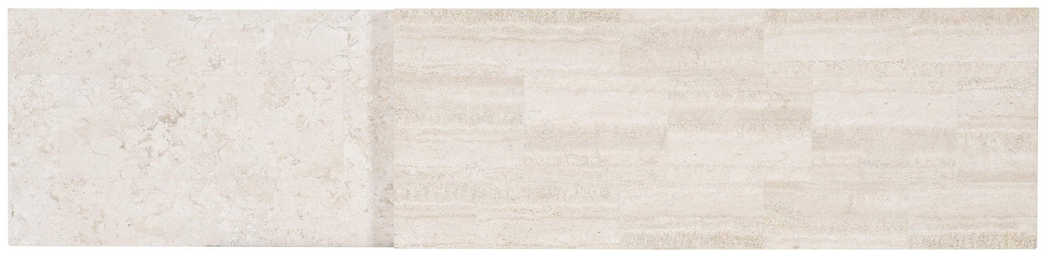 - Tablero de piedra travertino laminado fiorita bianco con acabado pulido sobre mesa más baja