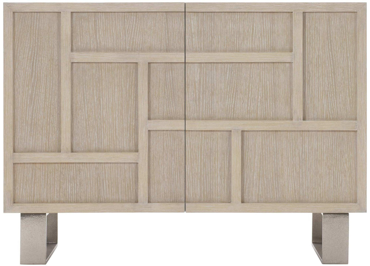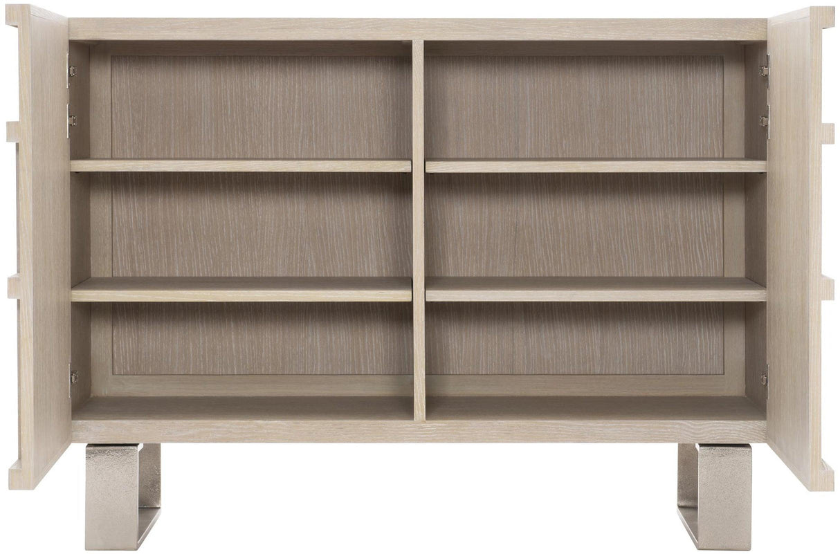 Cómoda moderna Solaria en roble duna con patas de níquel y revestimientos geométricos | Bernhardt