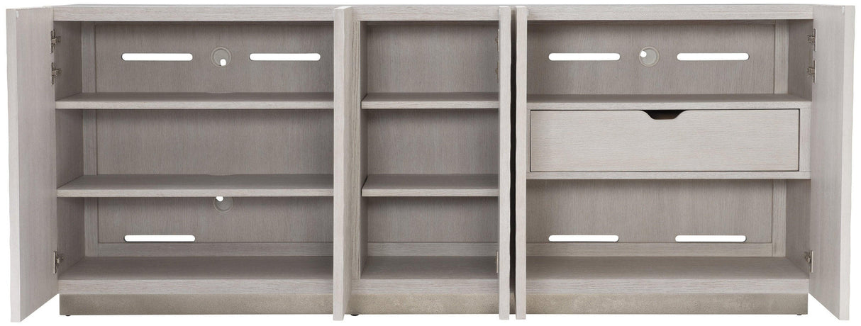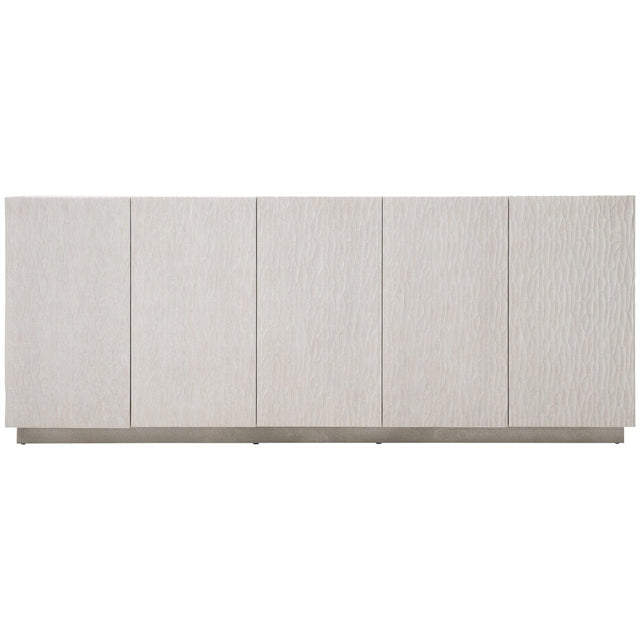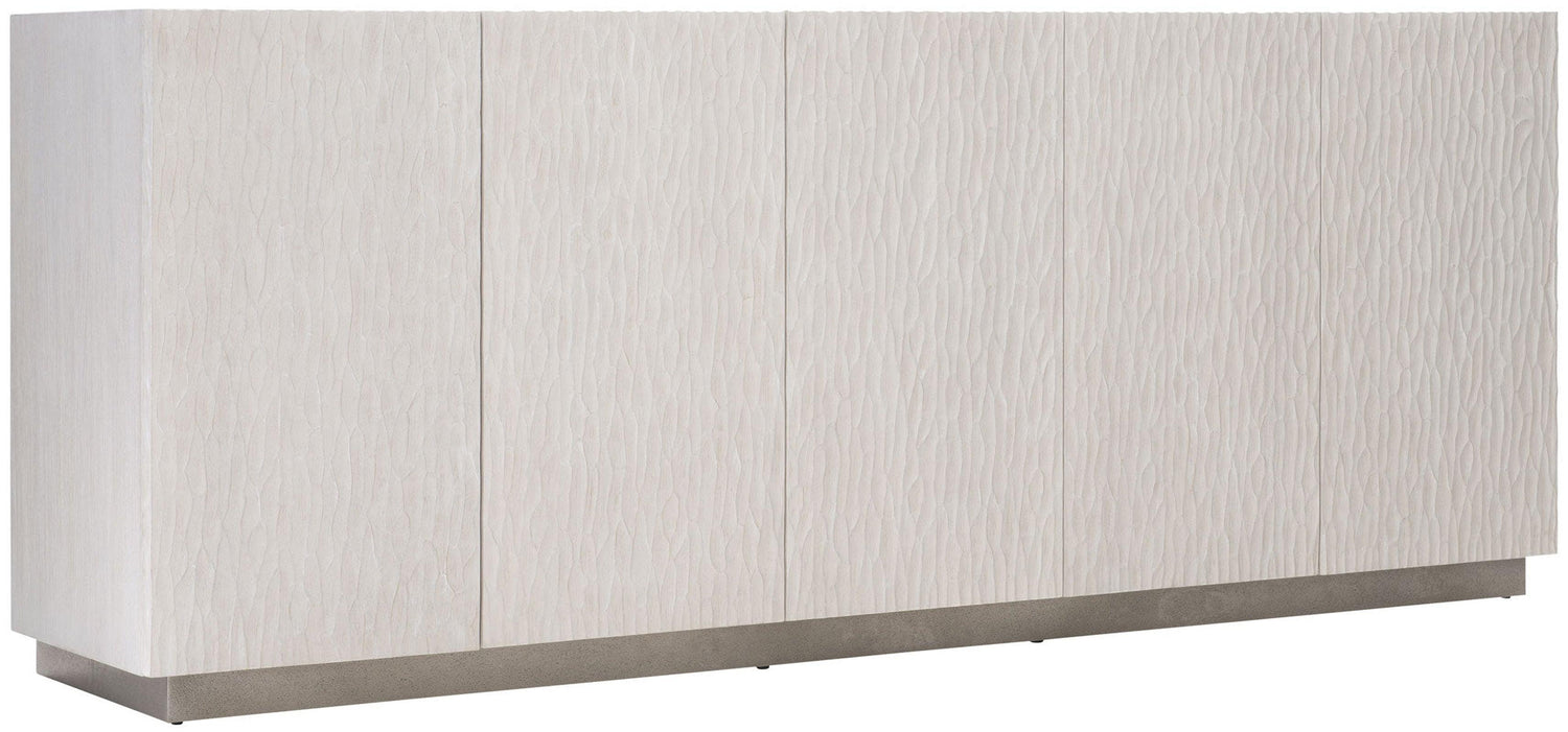 Aparador de entretenimiento Solaria de 80 pulgadas en color hueso desgastado con puertas de resina cincelada – Bernhardt