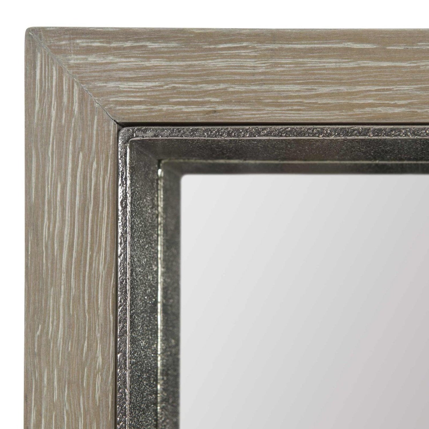 - Marco de madera en acabado Dune con marco de aluminio fundido insertado en acabado níquel brillante.