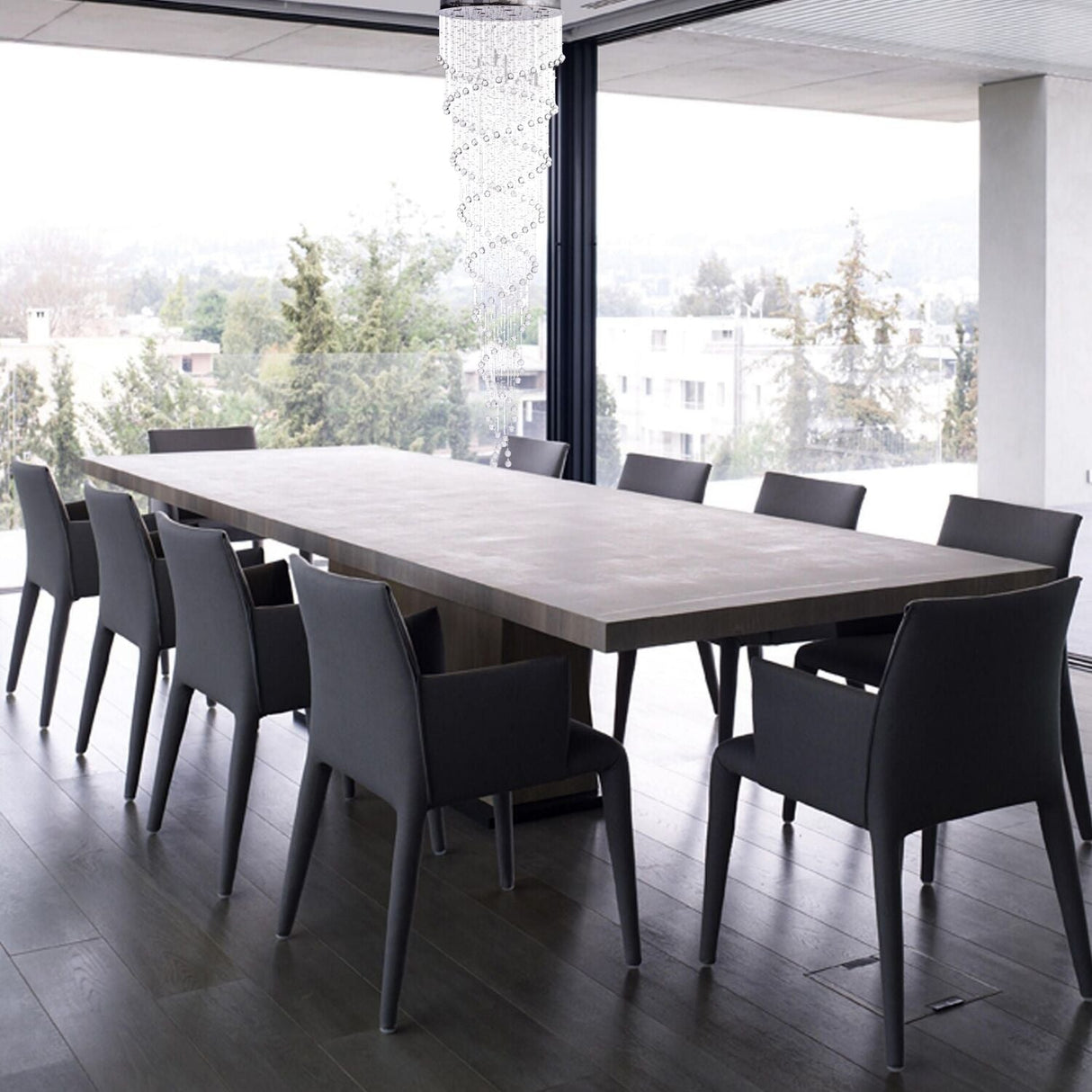 Finesse Decor presenta la hermosa lámpara de araña Double Helix con un flujo de cristales que se extiende a lo largo de 280 cm, creando una estética opulenta. Esta extravagante lámpara está adornada con cristales macizos en espiral. Incluye un dosel cromado y 12 bombillas LED GU10. Será el complemento perfecto y elegante para cualquier comedor con techo alto, recibidor, escalera o incluso una sala de estar moderna.
