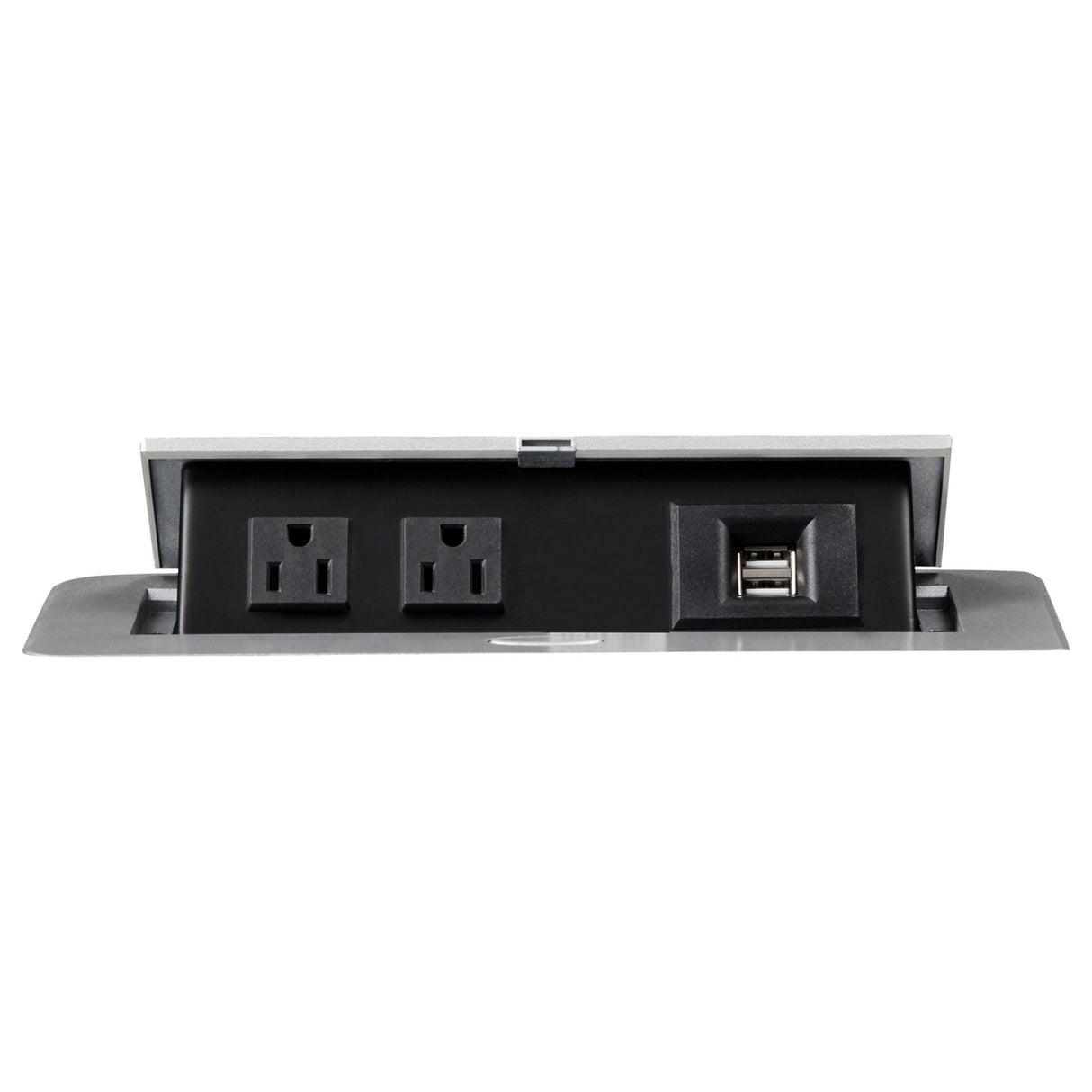 - El sofá cuenta con una mesa abatible con toma de corriente emergente (2 CA/2 USB), dos (2) portavasos y un cajón de almacenamiento.