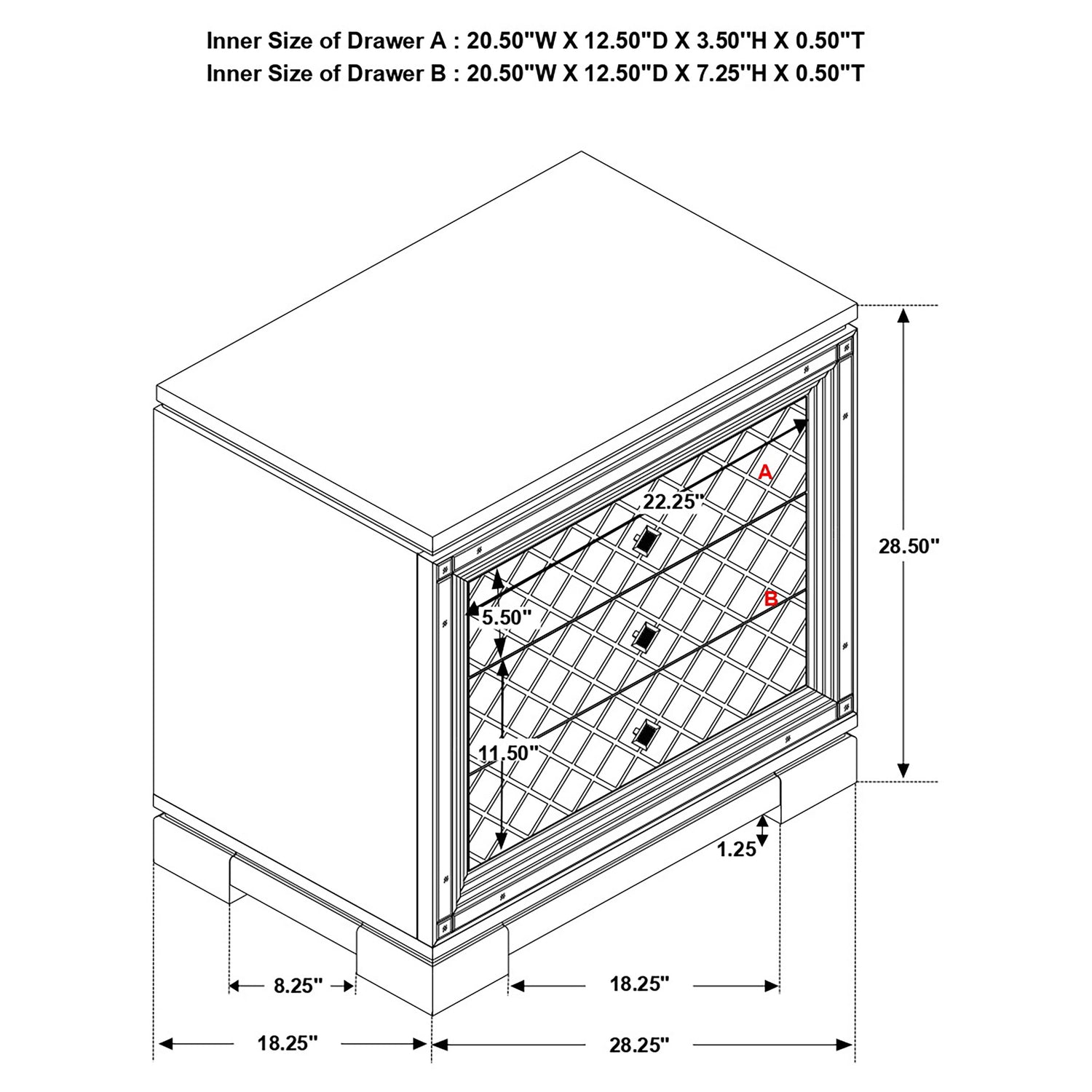 Mesita de noche: 28,25" de ancho x 18,5" de profundidad x 29" de alto