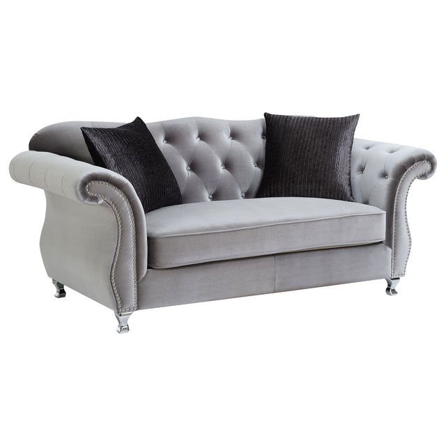 Sofá de dos plazas capitoné Frostine con botones, color plateado | Coaster